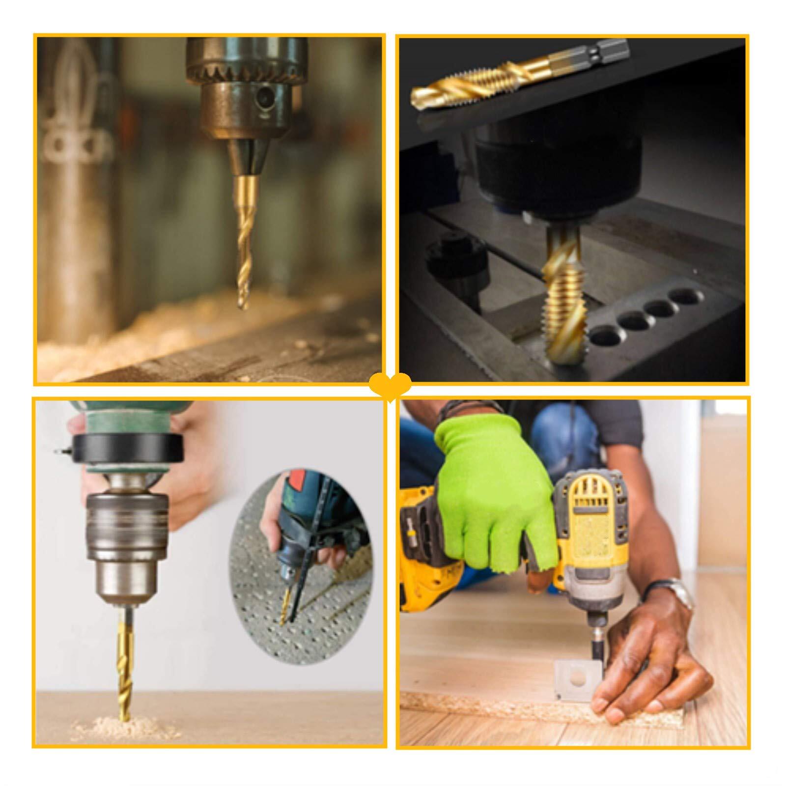 YFFSFDC ドリルタップ ドリルビット 六角軸 6本セット 面取りタップ 多機能 穴あけ ねじ切り タップ スパイラル HSS 高速度鋼 M3 M4 M5 M6 M8 M10 タップドリルセット (チタン-ゴールド)