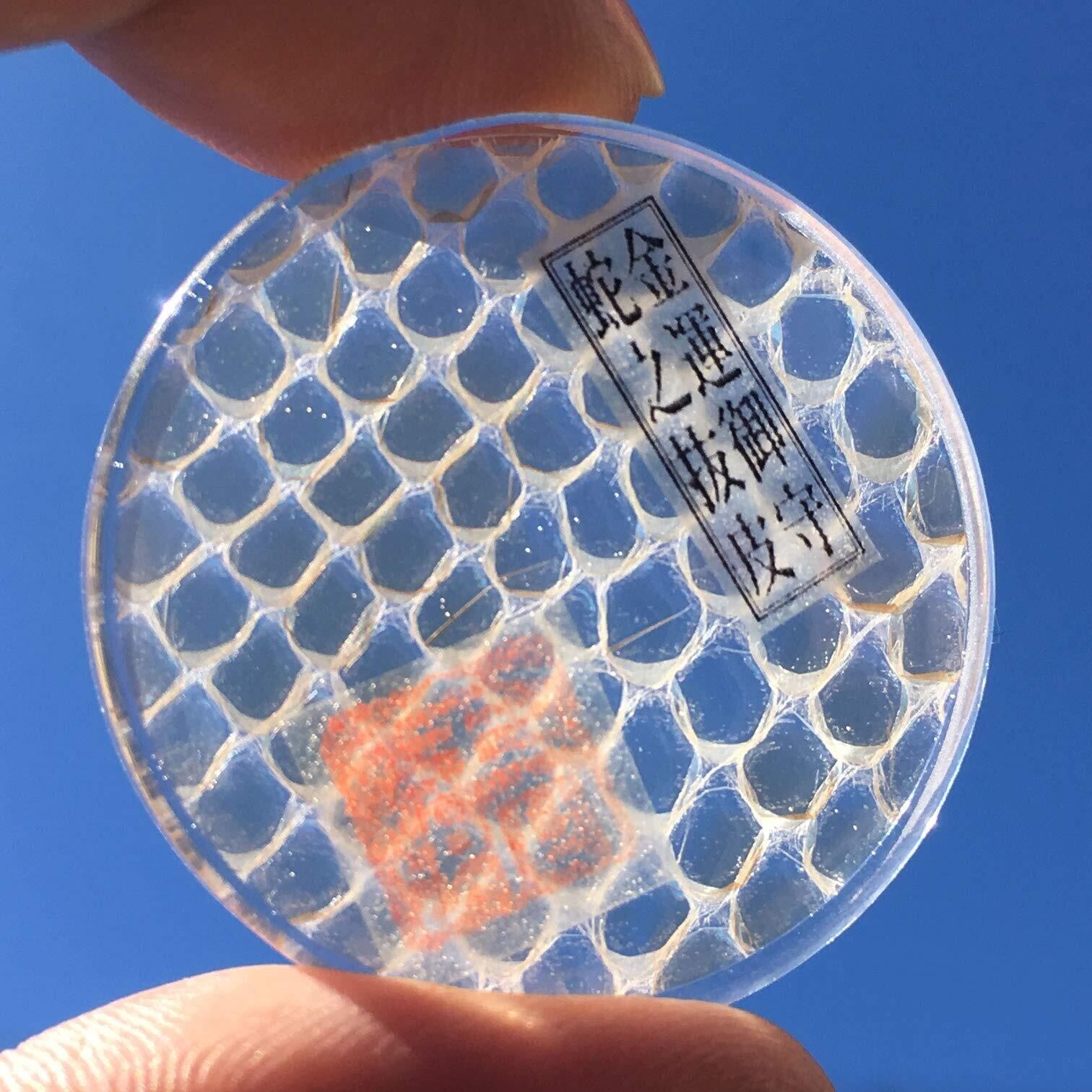 【サイズ】3.2×3.2×0.5(cm) ※蛇の抜け皮の大きさ、形、色目には多少のバラつきがあります。掲載写真ときっちり同じにはなりませんので、あらかじめご了承ください