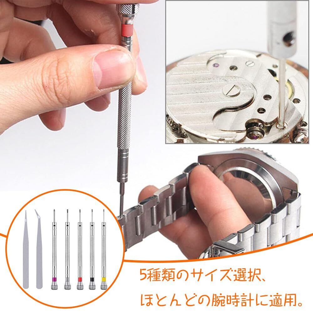 サイズ:時計職人ドライバー5種類の異なるサイズ(0.8 mm、1.0 mm、1.2 mm、1.4 mm、1.6 mm)異なるサイズは異なる色に対応し、区別しやすい。