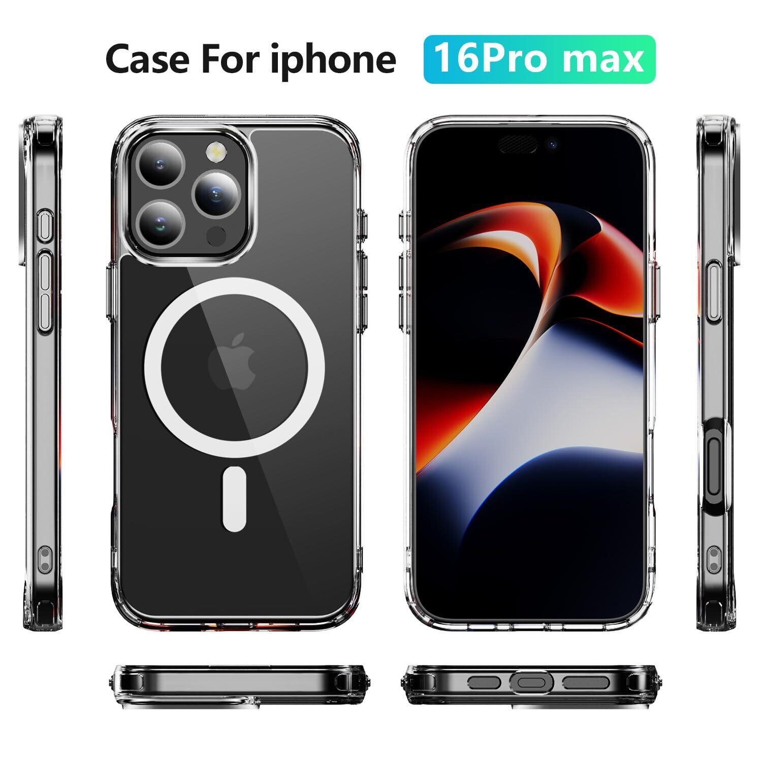 iPhone 16 Pro Max 用 ケース MagSafe対応 クリア PC 背面 軽量 黄変防止 耐衝撃 傷つけ防止 アイフォン16 Pro Max 用 ケース マグネット搭載 マグセーフ対応 バンパー ワイヤレス充電対応 ストラップホール付き 携帯カバー (クリア)