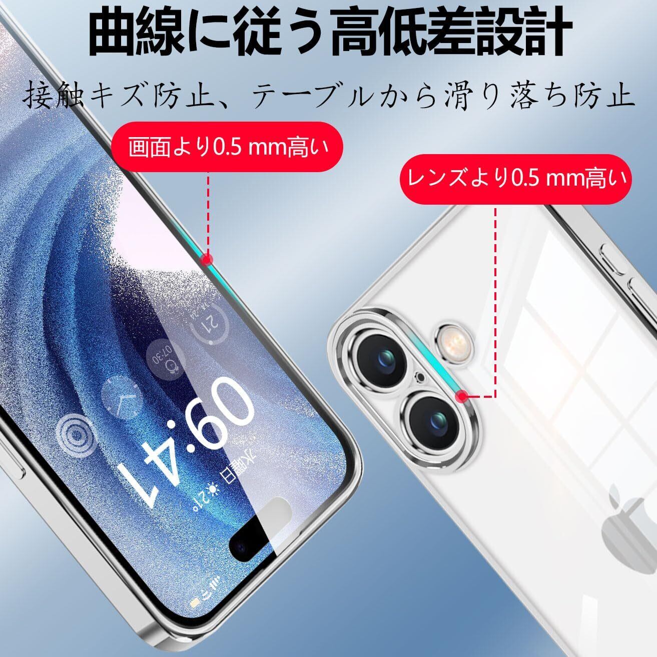 iPhone16 Plus 用 ケース クリア カメラ保護 いphone16Plus スマホケース 薄型 TPU 軽量 変形防止 人気 スリム ソフト アイフォン 16 Plus カバー 衝撃吸収 ストラップホール付き(シルバー)