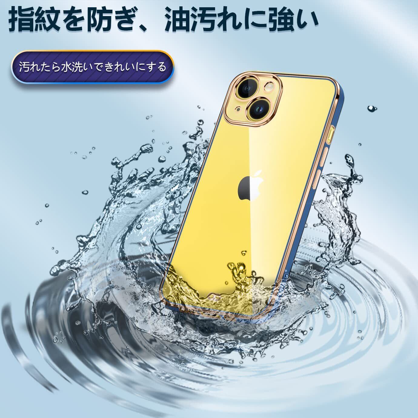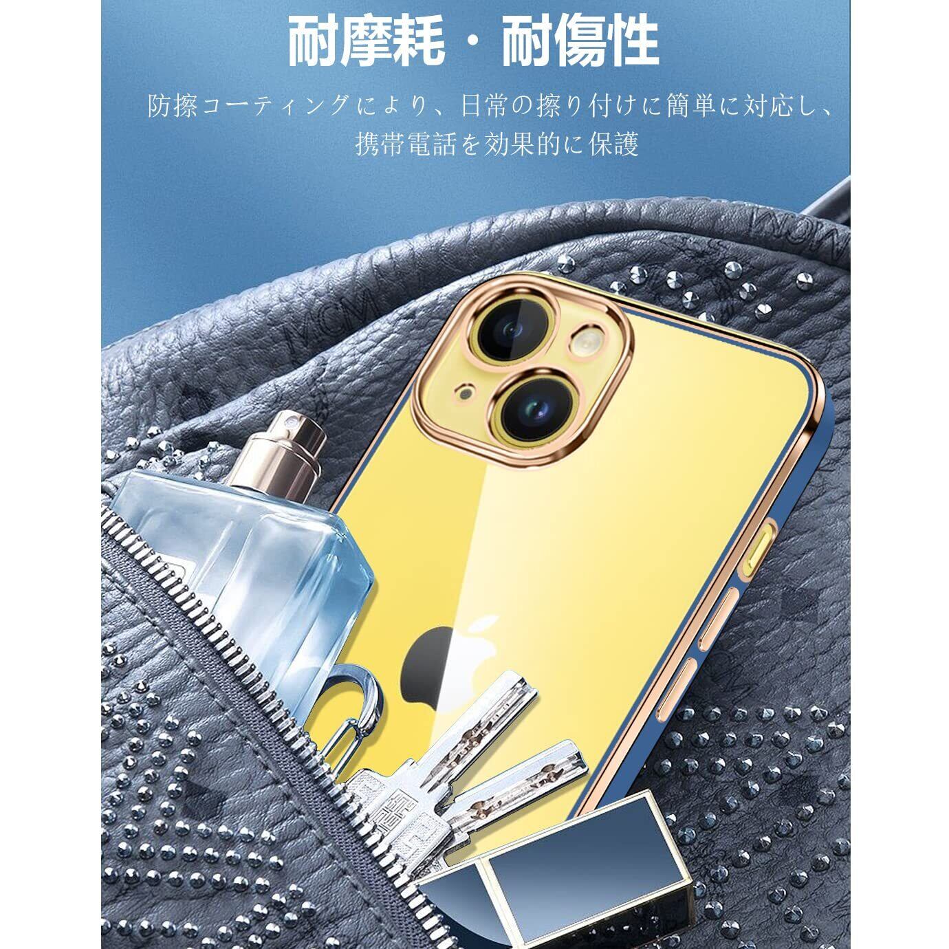 iPhone14 ケース クリア 透明 アイフォン14 カバー メッキ加工 耐衝撃 TPU ソフト 薄型 軽量 ストラップホール付き 落下防止 ワイヤレス充電(ブルー)