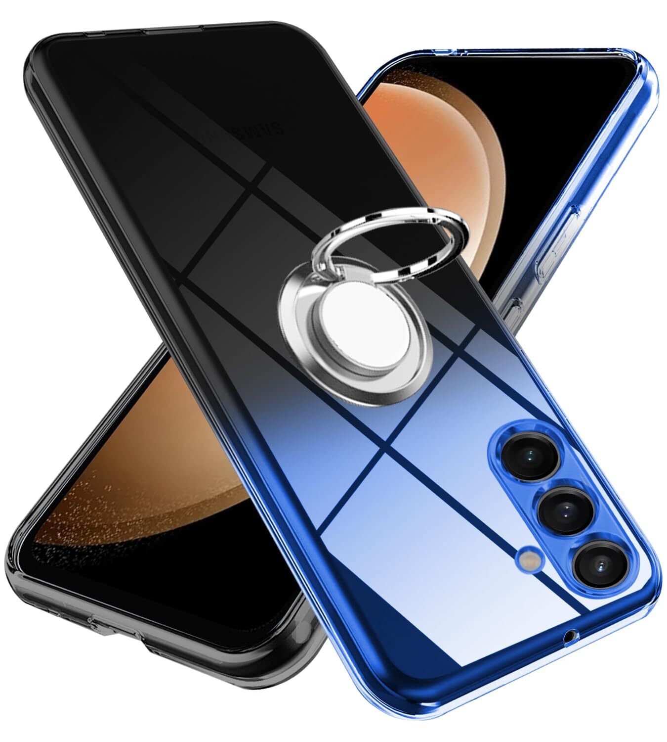 Galaxy S23 FE ケースリング TPU 薄型 軽量 グラデーション色 ケース 耐衝撃 指紋防止 車載ホルダー対応 防塵 一体型 人気 携帯カバー 全面保護カバー ブルーブラック