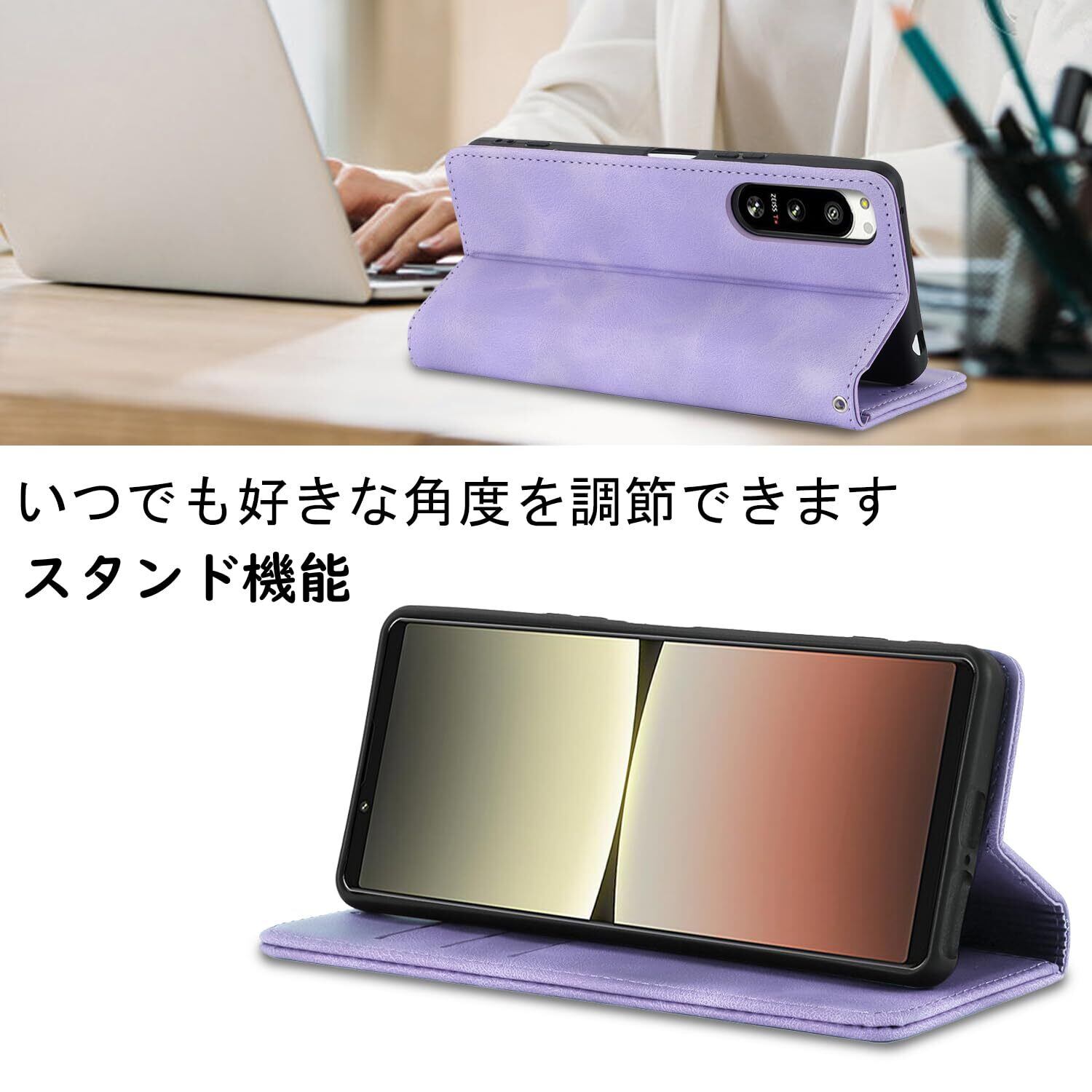 Havaya Xperia5 IV ケース Xperia5 IV カバー SO-54C ケース 手帳型 SOG09 docomo A204SO ストラップ au SONY ソニー エクスペリア5iv カバー 第4世代 耐衝撃 SoftBank XQ-CQ44 楽天モバイル ドコモ カード収納 レザー スエードの質感-パープル