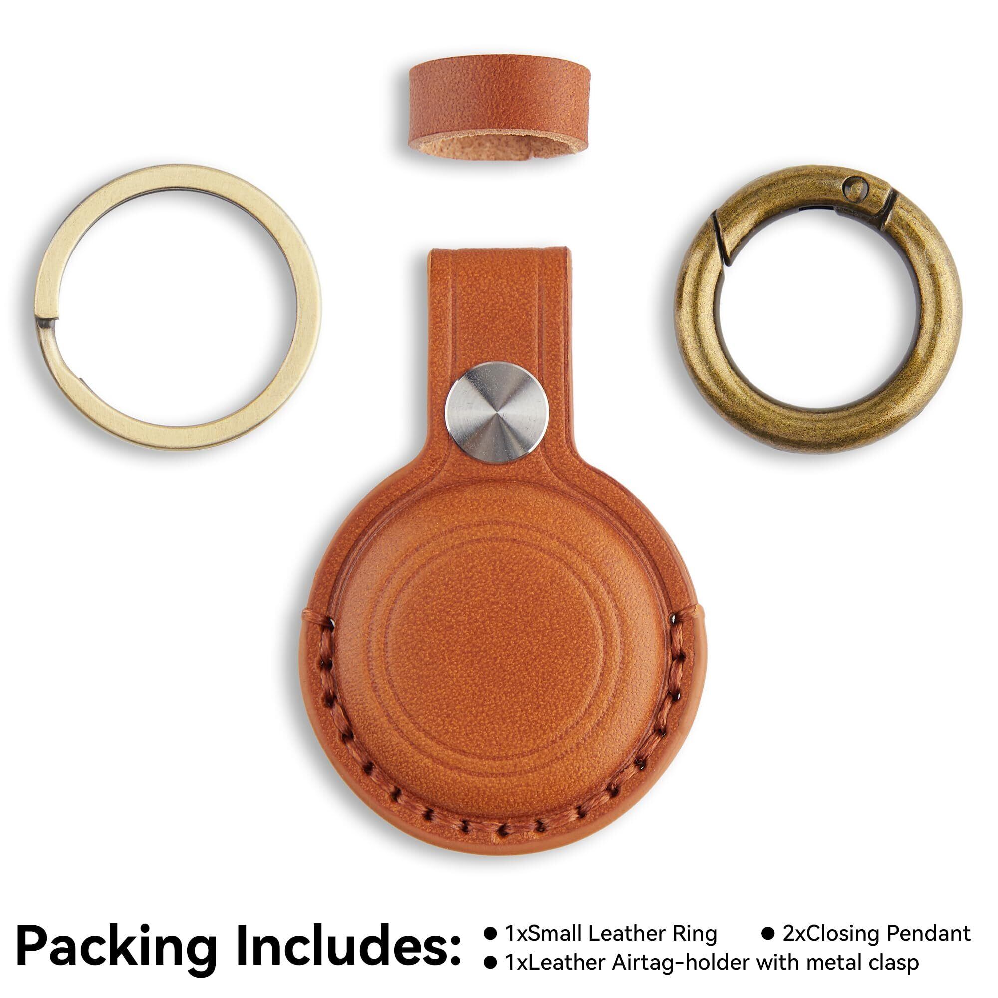 【2022最新】[DLENP] AirTag ケース レザー airtag ケース 本革 airtag キーホルダー 本革ケース エアタグ保護ケース 全面保護 耐衝撃 スマホ/カバン/荷物/財布/バッグに忘れ物防止 サドルブラウン(1枚入り) | わくわくSHOP