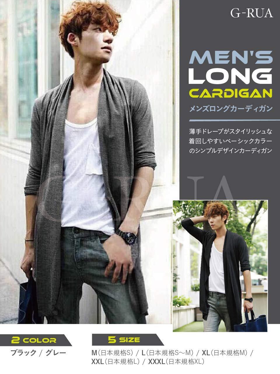 [ジルア] ロング ニット カーディガン S ~ XL 薄手 前開き シンプル カジュアル カーデ ガウン ブラック グレー メンズ #051