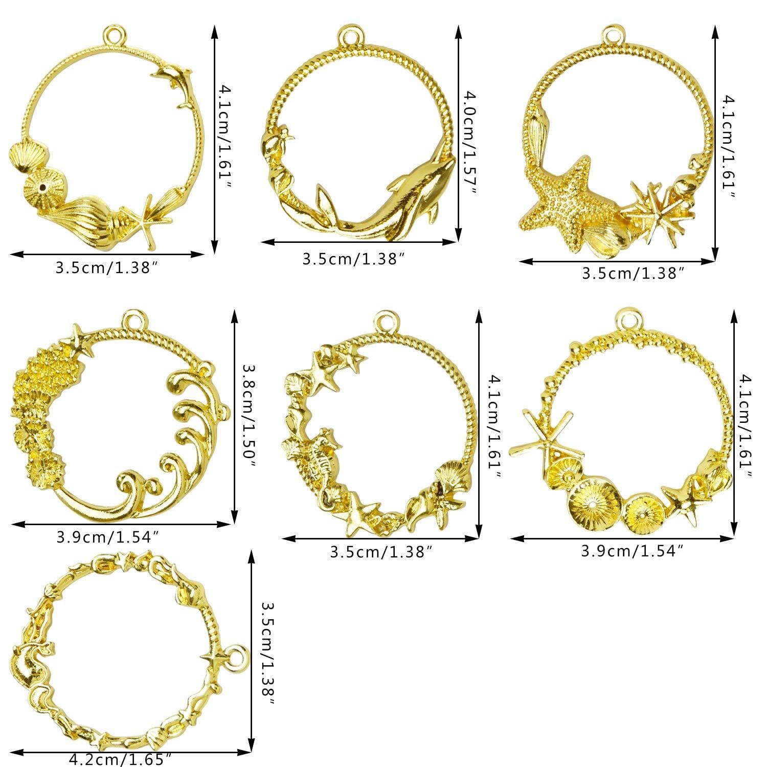 【特価商品】レジン枠 空枠 フレーム MUNCVY パーツ ゴールド 7種14個 セット uvクラフト 大量 カン付き ラウンド型 マリンモチーフ 海 イルカ ヒトデ 波 美しい セッティング アクセサリーパーツ から枠 | わくわくSHOP