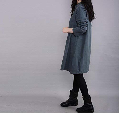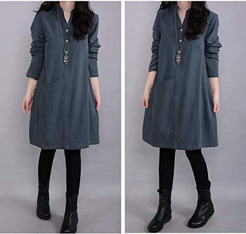 [aspersio] [アスペルシオ] 長袖 膝丈 スキッパー ワンピース aライン チュニック シャツ レディース