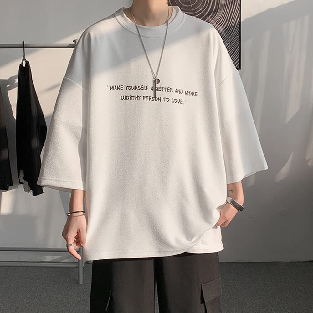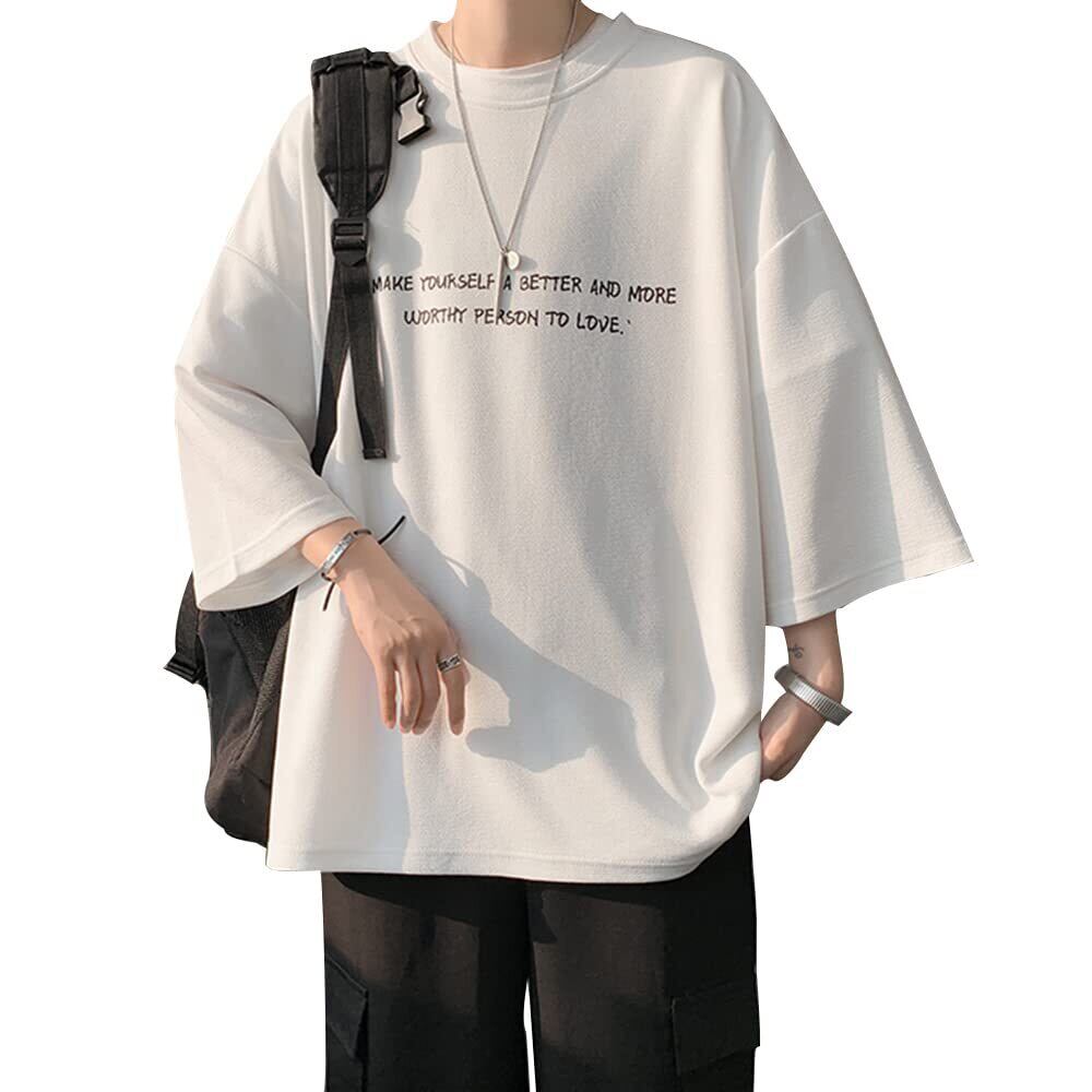 【人気商品】[foveitaa] 夏服 メンズ tシャツ 七分袖 涼しい ゆったり 大きい サイズ かっこいい服 クルーネック おしゃれ ビッグ シルエット カットソー カジュアル トップス 柔らかい肌触り 人気 なつふく 男女兼用 夏用 ウェア