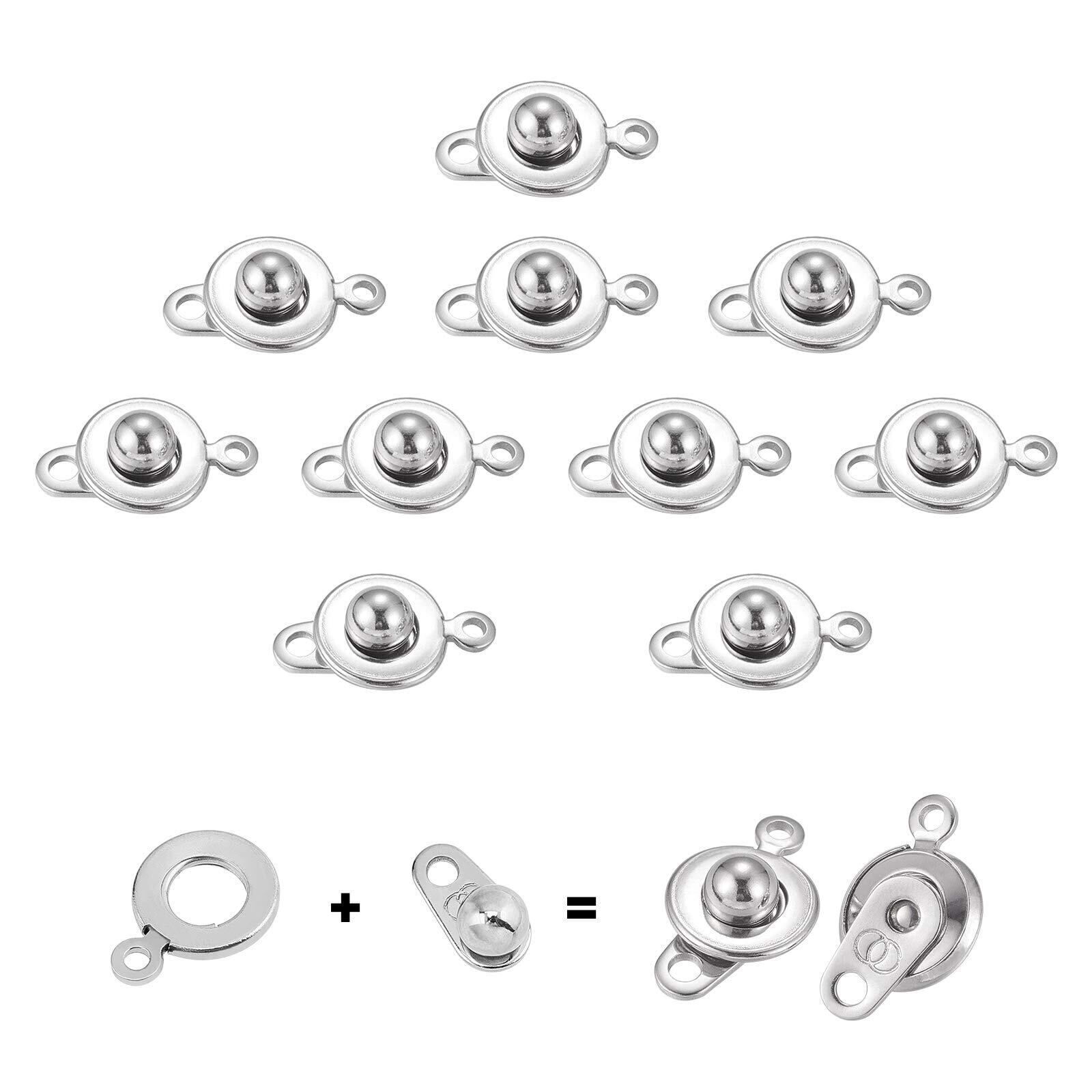 UNICRAFTALE 約20セット 15.5mm ステンレス 留め具 クラスプパーツ スナップクラスプ 押す ステンレス 留め具 留め金 ステンレス色 ステンレス エンドパーツ チェーン留め 接続金具 金属パーツ ブレスレット留め具 ネックレス 留め具 アクセサリーパーツ 副資材 ハンドメイド 手芸用品