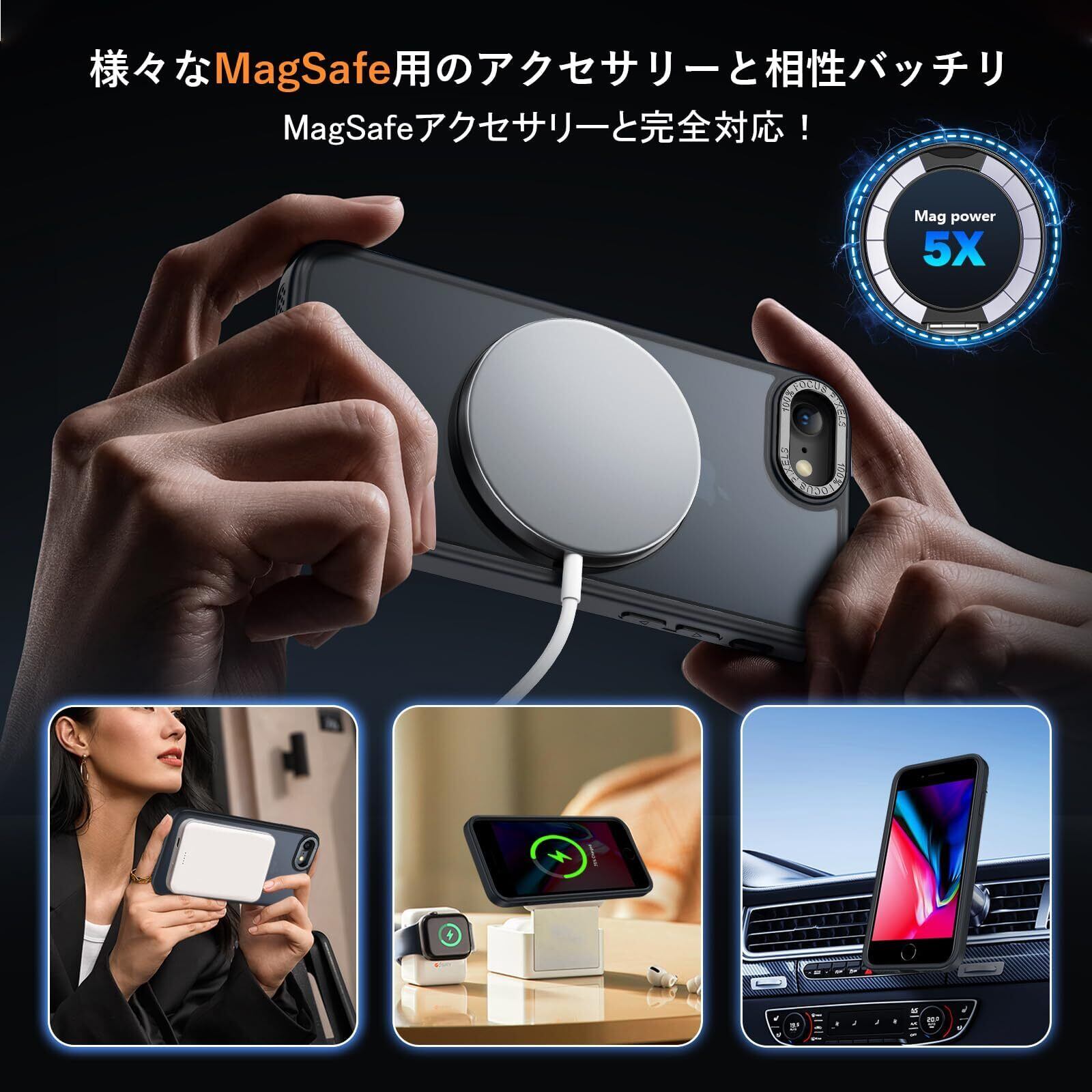 【MagSafe対応・磁力アップグレード】:強力なN52磁石を搭載しており、磁石吸着力は従来より10倍高め、ケースを装着したまま高速ワイヤレス充電が可能です、充電時の熱を周囲に発散して。Magsafe充電がかつてないほど簡単にできます!強い磁力により車運転中の激しい振動でもMagsafe車載ホルダーから外れることなく、市販のあらゆるMagsafeアクセサリーに簡単対応!いくら振っても落ちないので、充電しながらゲームをやっても問題なし!【iPhone8 / iPhone SE2 / iPhone SE3 用 ケース】