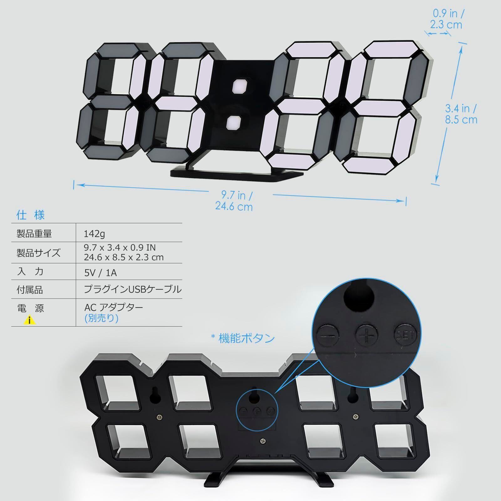 【大画面表示】大画面の時間表示で、シンプルで分かりやすいデザインの3D LED時計、数字が大きいので、すぐに時間を確認できます。