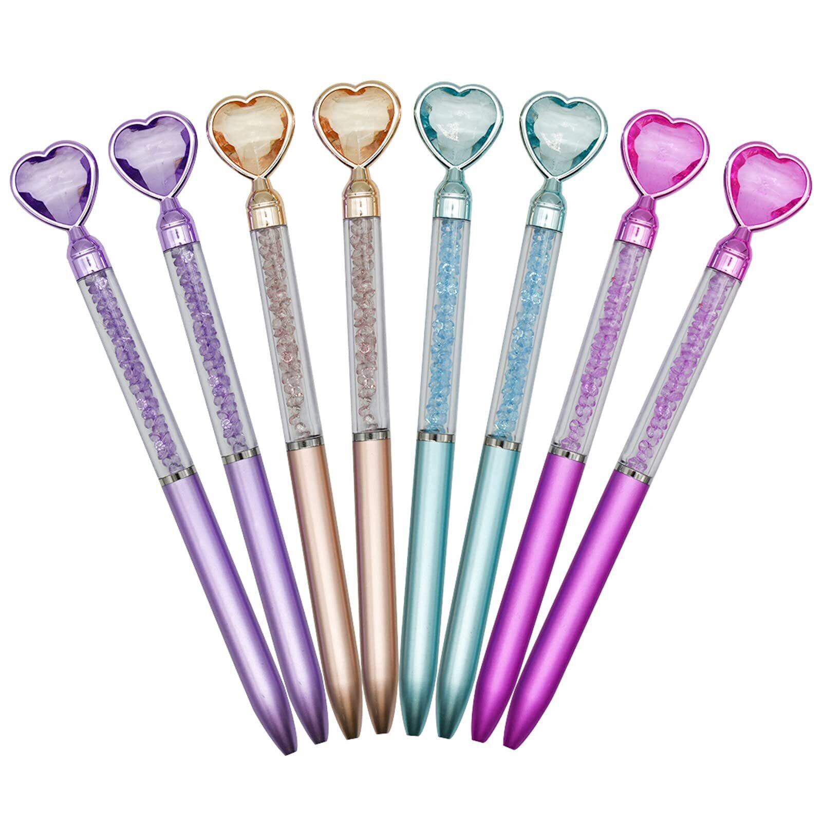 Maydahui おしゃれ ハート クリスタル ダイヤモンド ボールペン 油性 8本セット 0.5mm 黒インクかわいい キラキラ 愛 love 可愛い 文房具 子供 学生 ギフト プレゼント