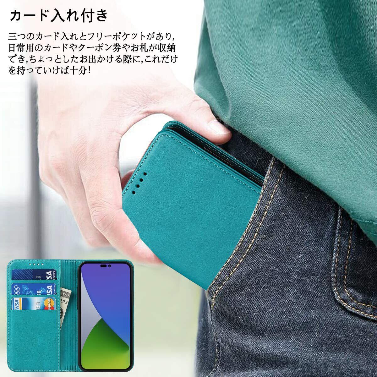 iPhone 15 pro 用 ケース 手帳型 for iphone15pro アイホン15pro アイフォン15pro 手帳 耐衝撃 いphone15pro 15pro 15プロ アイホン15プロ アイフォン15プロ アイホン 15proケース アイフォン 15 pro case 適用 iCoverCase マグネット カードケース スマホケース スタンド 落ち着いた色 レトロ ターコイズ