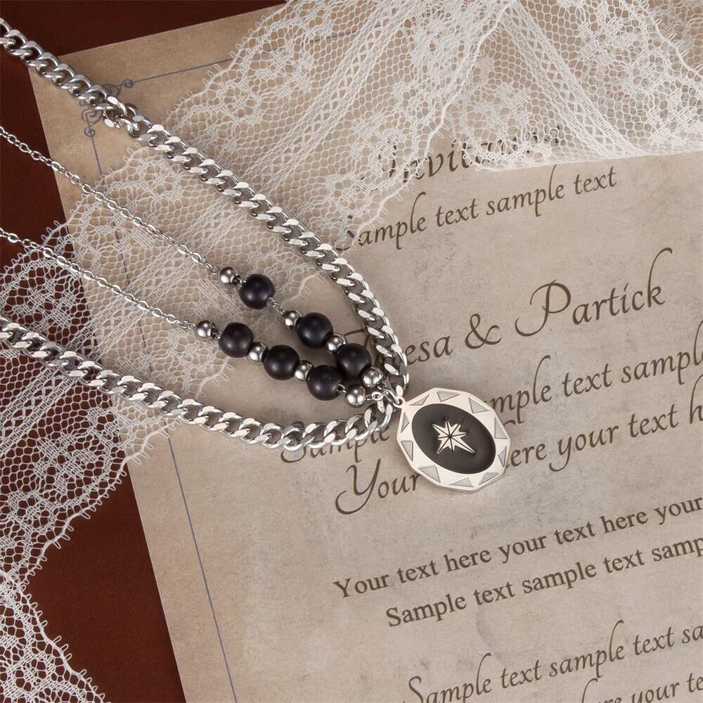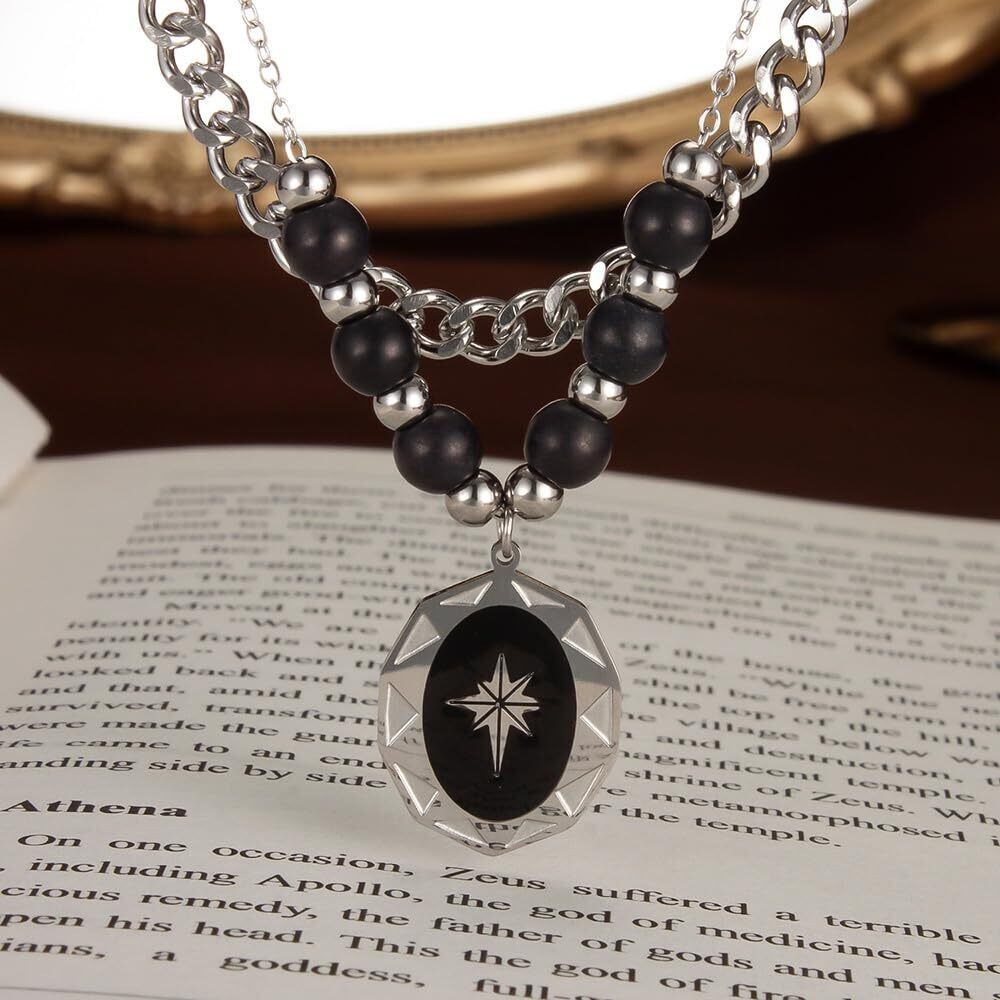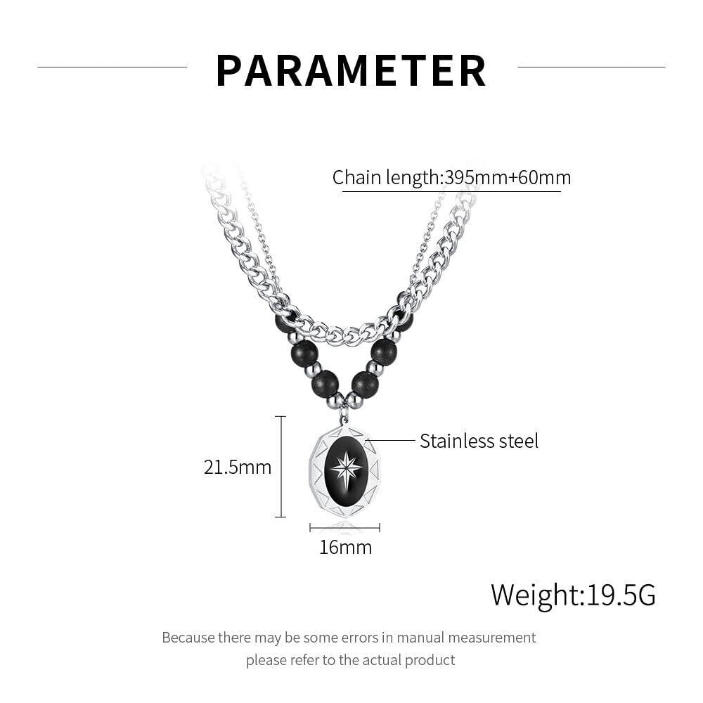【Rockyu ネックレス】レディース ネックレス ブランド 八芒星ネックレス お守り ブラックビーズ 二連ネックレス チェーン45cm オニキス 金属アレルギー おしゃれ 素材: チタン 【重量 】: 19.5g 【寸法 】:チェーン長さ:45cm ペンダントサイズ:16*21.5mm。