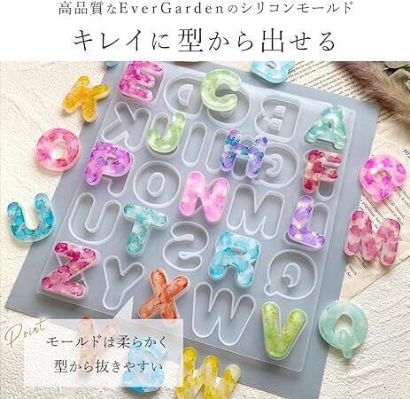 【数量限定】Evergarden 【正規品】 丸文字 アルファベット シリコンモールド 【鏡面仕上】 英字 ローマ字 イニシャル 大文字 英語 文字 数字 イニシャル レジン アクセサリー パーツ 作成 ネックレス イヤリング ピアス ペンダント キーホルダー シリコン モールド アロマストーン 石膏 シリコン型 型 (通常サイズ) | わくわくSHOP