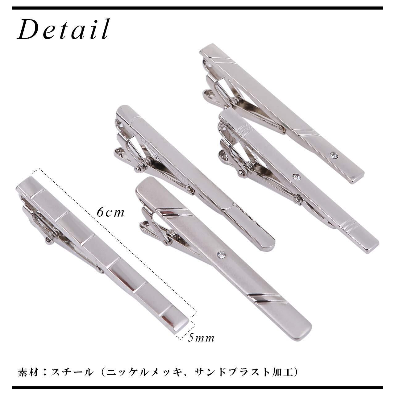 シンプルなデザインのネクタイピン5本セット。 ビジネス ・ パーティ ・ 結婚式 などフォーマルな場で胸元のアクセントになります。
