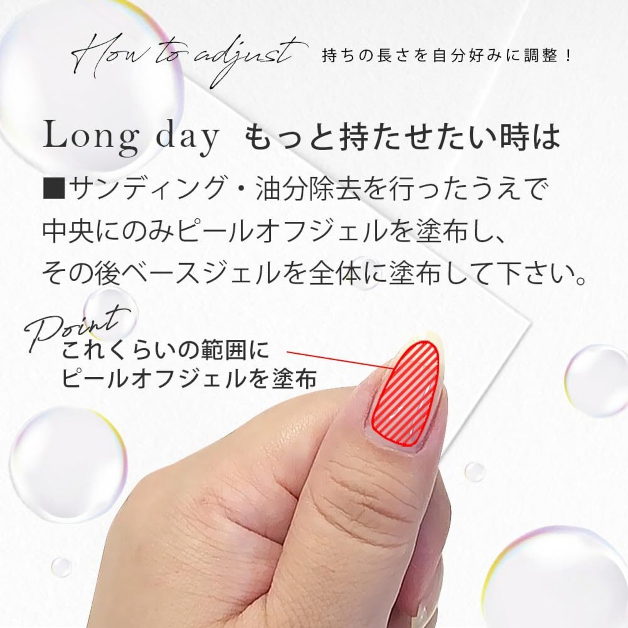 自爪の負担がゼロ。シールのように剥がれるベースジェルだから爪への負担は最低限。ピールオフなら1日だけのオンオフや練習にも最適!