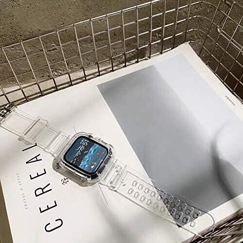 【人気商品】コンパチブル apple watch バンド アップルウォッチバンド スポーツバンド 一体型交換用ベルト 透明 クリア 耐衝撃ベルト iWatch Series 49mm 46mm 45mm 44mm 42mm 41mm 40mm 38mm 10/9/Ultra2/Ultra/8/7/6/5/4/3/2/1/SEに対応 TPU材質 全面保護ケース (38mm/40mm/41mm) | わくわくSHOP