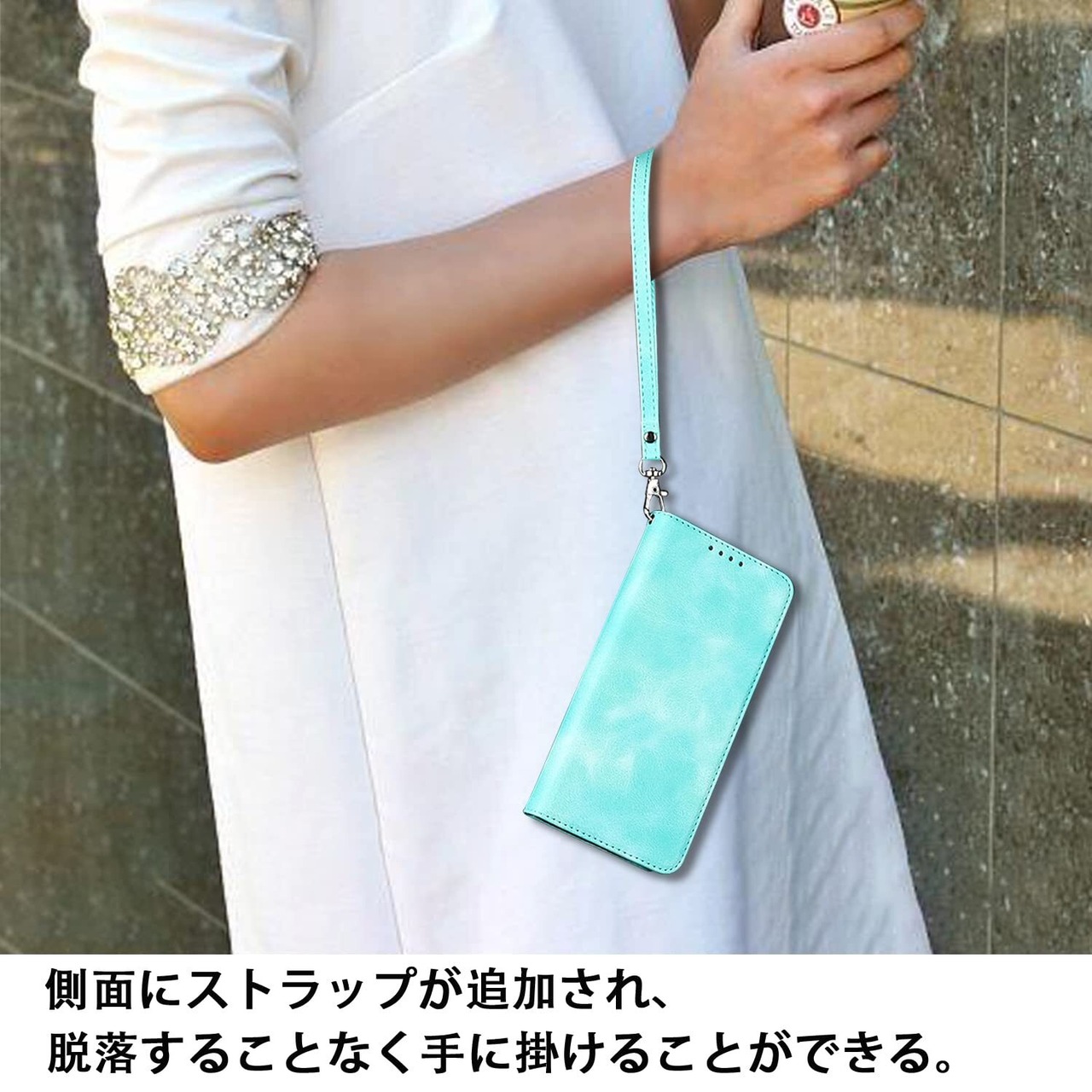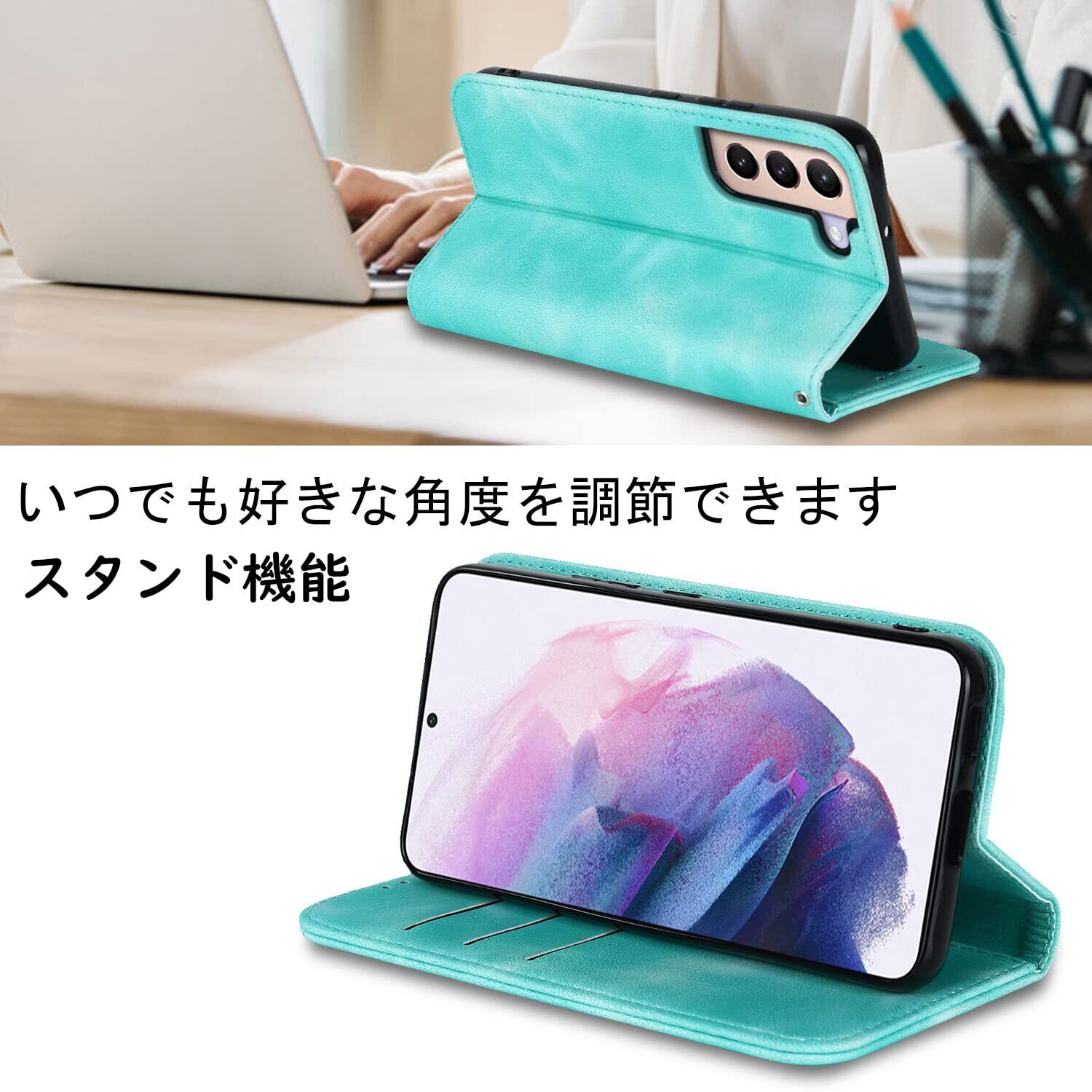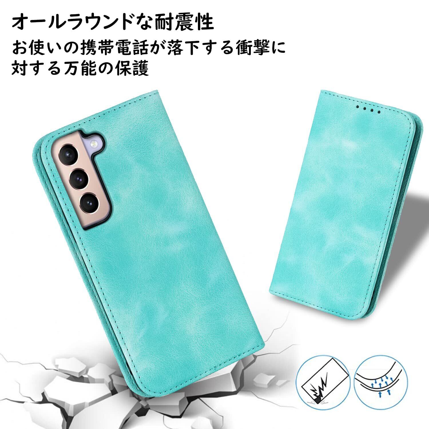 Havaya Galaxy S22 ケース ギャラクシーs22 ケース SC51C ケース 手帳型 スマホケース SCG13 au ストラップ docomo カバー 耐衝撃 ドコモ サムスン samsung カード収納 SoftBank レザー スエードの質感-ミントグリーン