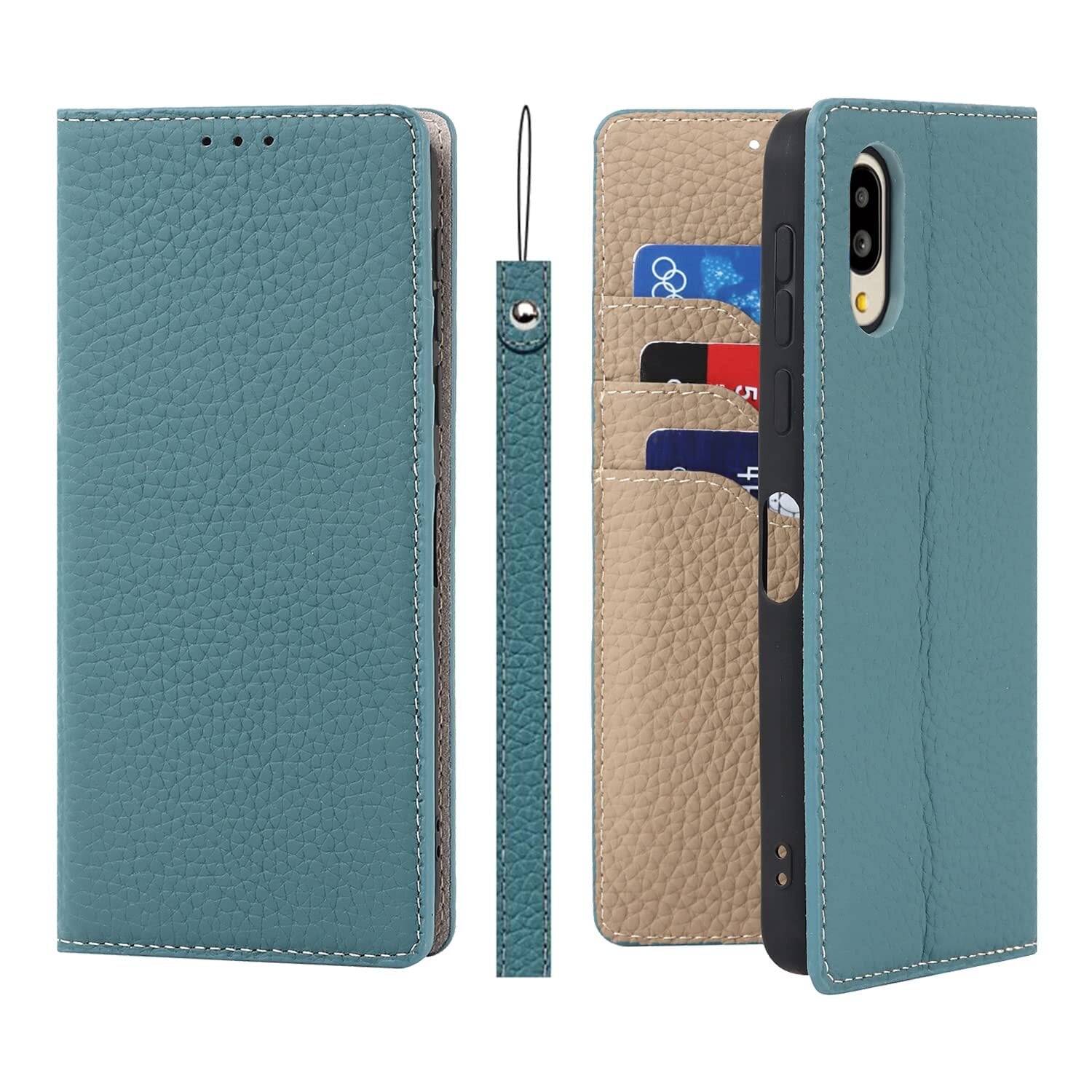 Havaya Basio active2 スマホケース ベイシオアクティブ2 ケース Basio active ケース 手帳型 本革 ストラップ au SHG12 SHG09 シンプルスマホ6 耐衝撃 A201SH docomo A404SH シャープ Sharp シンプルスマホ7 カバー SoftBank カード収納 スタンド機能 レザー-スカイブルー