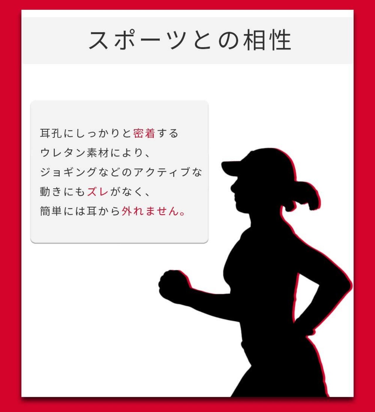[ 低反発ウレタン製 ]:耳にやさしくフィットして、長時間使用でも痛くなりにくい素材でできています。