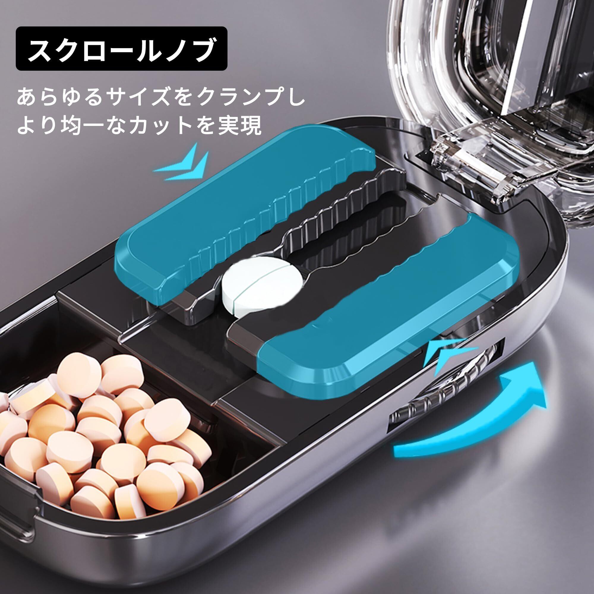 kocomio ピルカッター 複数錠剤用 2分割 4分割 錠剤カッター まとめ切り 薬局薬カッター 薬持ち運び タブレットカッター おしゃれ 薄型ピルケース 収納ケース付き 高耐久ABS素材 (黒)