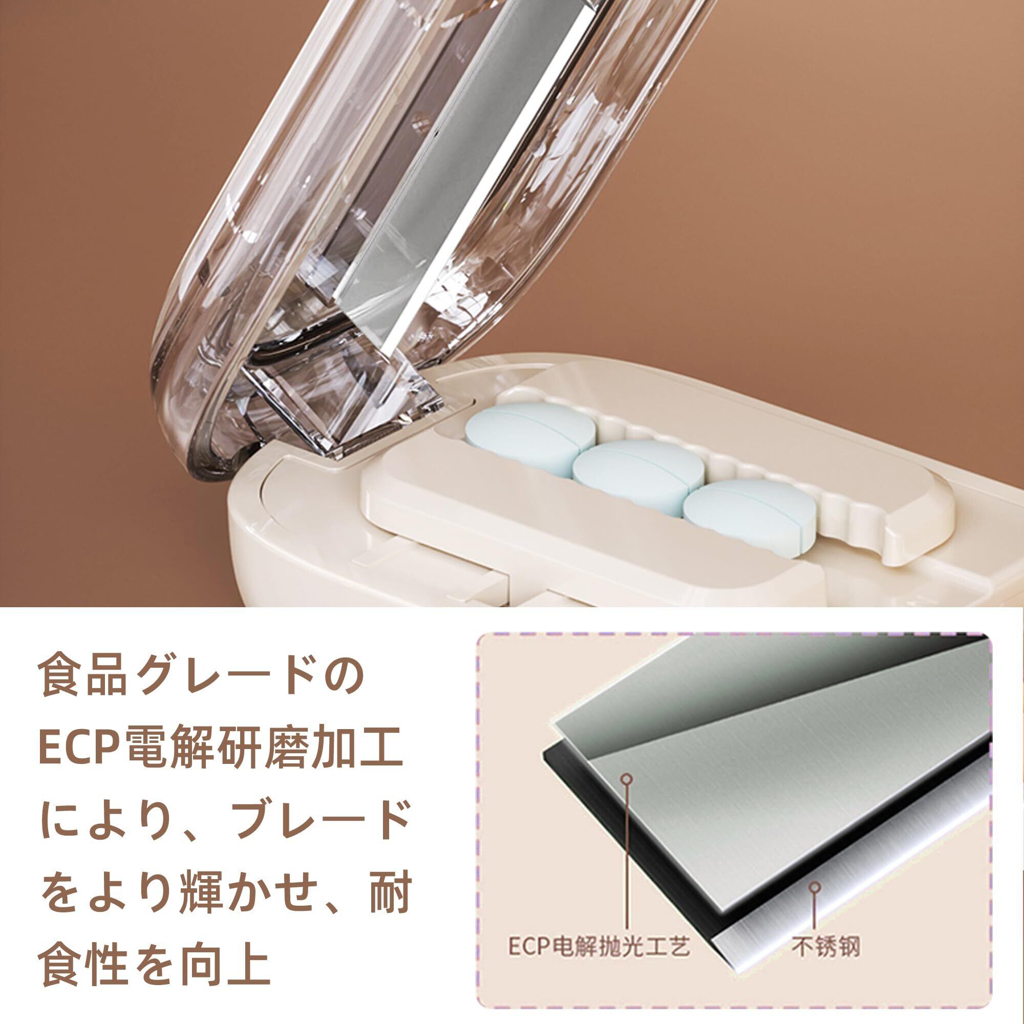 【使い方は簡単】錠剤を小型錠剤用ピルカッターに入れ、ギアを回転させ、錠剤が所定の位置に留まるように2本のバーを調整し、上部を中央に均等に押し下げるだけです。薬カッターは簡単に大小の錠剤、タブレット、ビタミン、サプリメントを1/2、1/4にカットします。