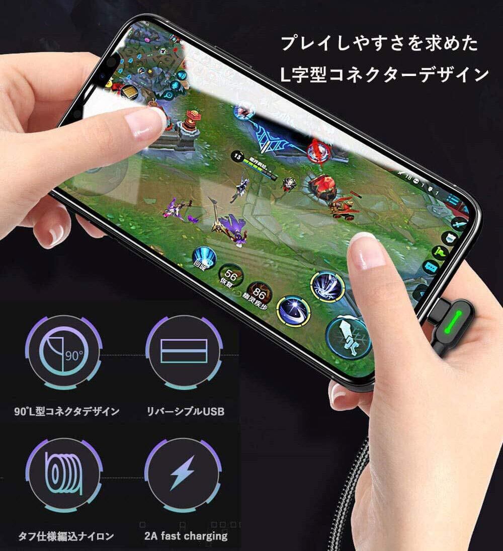 簡単L字型設計:90度に曲がった「L型」のライトニング ケーブル。しながらゲーム機の操作やスタンド等に設置した際に邪魔になりにくい。L字型設計で、抜き差し簡単し、損傷や変形しません。横持ちの場合でも、ケーブルは邪魔になりません。