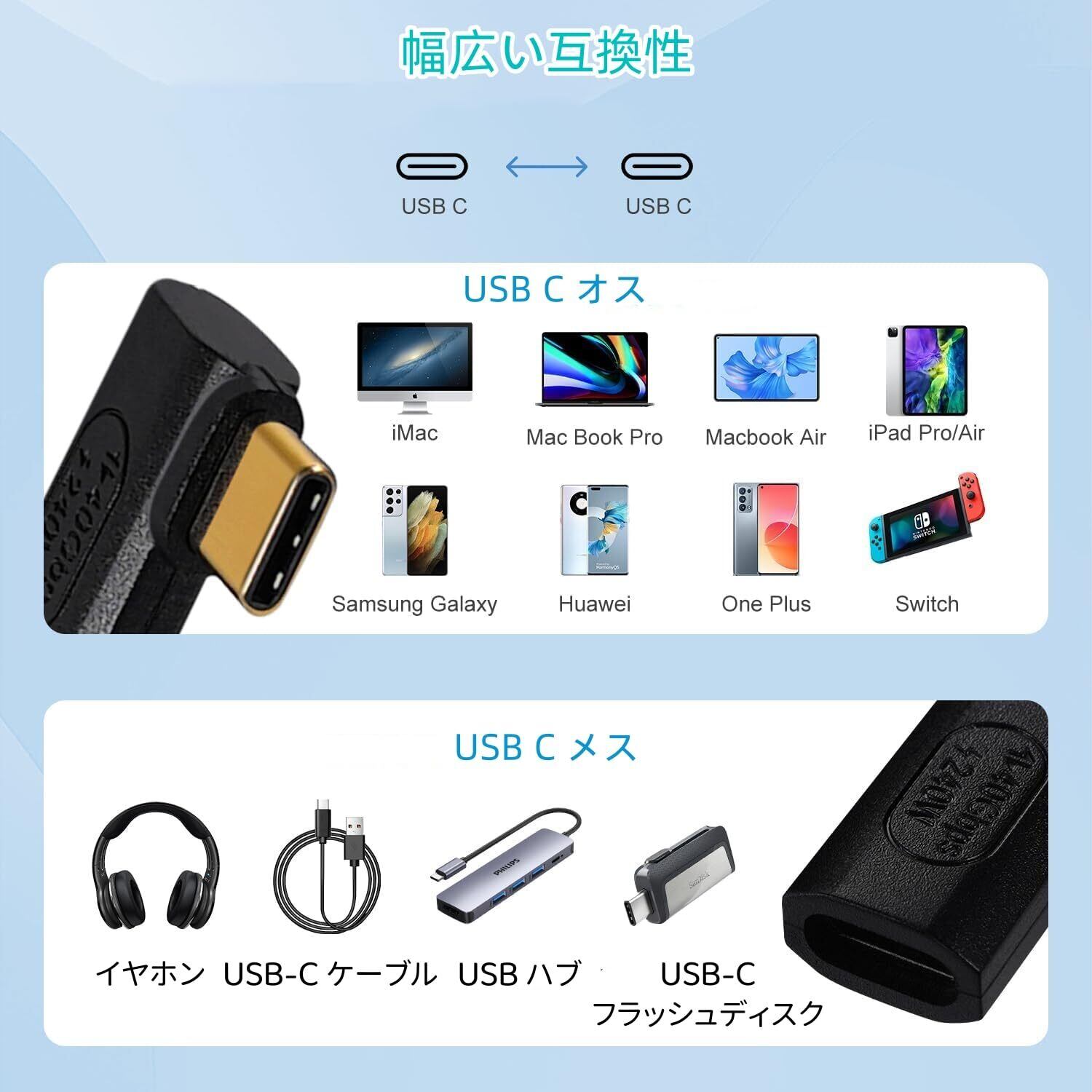 【新着商品】YFFSFDC USB4.0 Type C 変換アダプター L字 L型 タイプc type-c 変換アダプタ オス メス 2個セット 左右 90度直角 サイドベント USB4.0延長アダプタ 40Gbps高速転送 PD 240W/50V急速充電 8K@60Hz映像出力 スリムデザイン Thunderbolt 3、Mac Book ProなどのType Cデバイスに対応 | わくわくSHOP