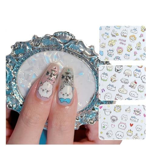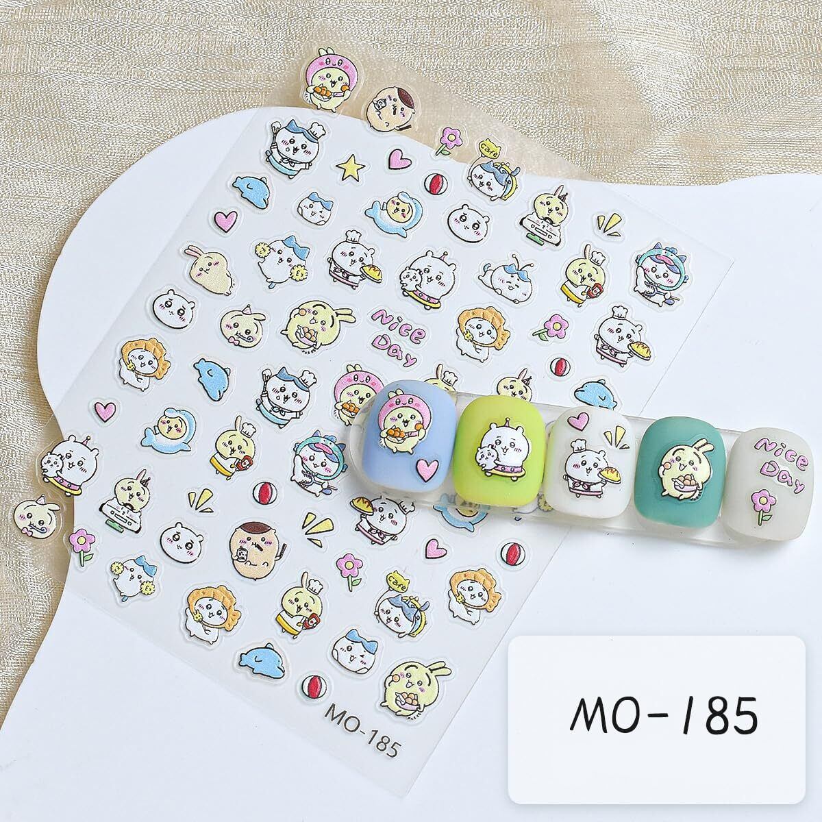 ちい ネイルシール ネイルステッカー かわいい キャラクター ハチワレ うさぎ 浮き彫り レリーフ マニキュア ネイルアート キャラクター ネイルデザイン おしゃれ ネイルデコ DIY デコレーション (セットA 3枚(MO185+186+187))
