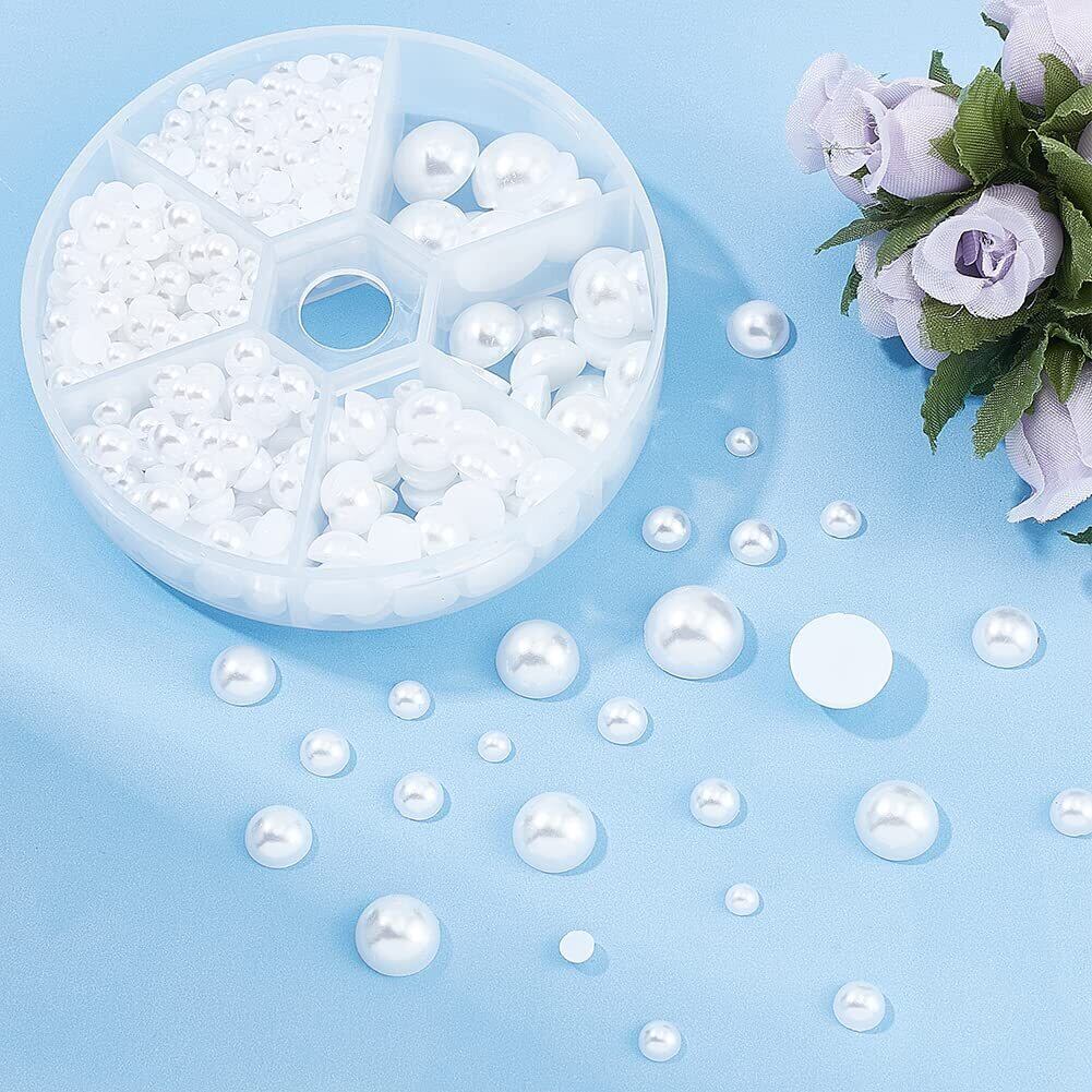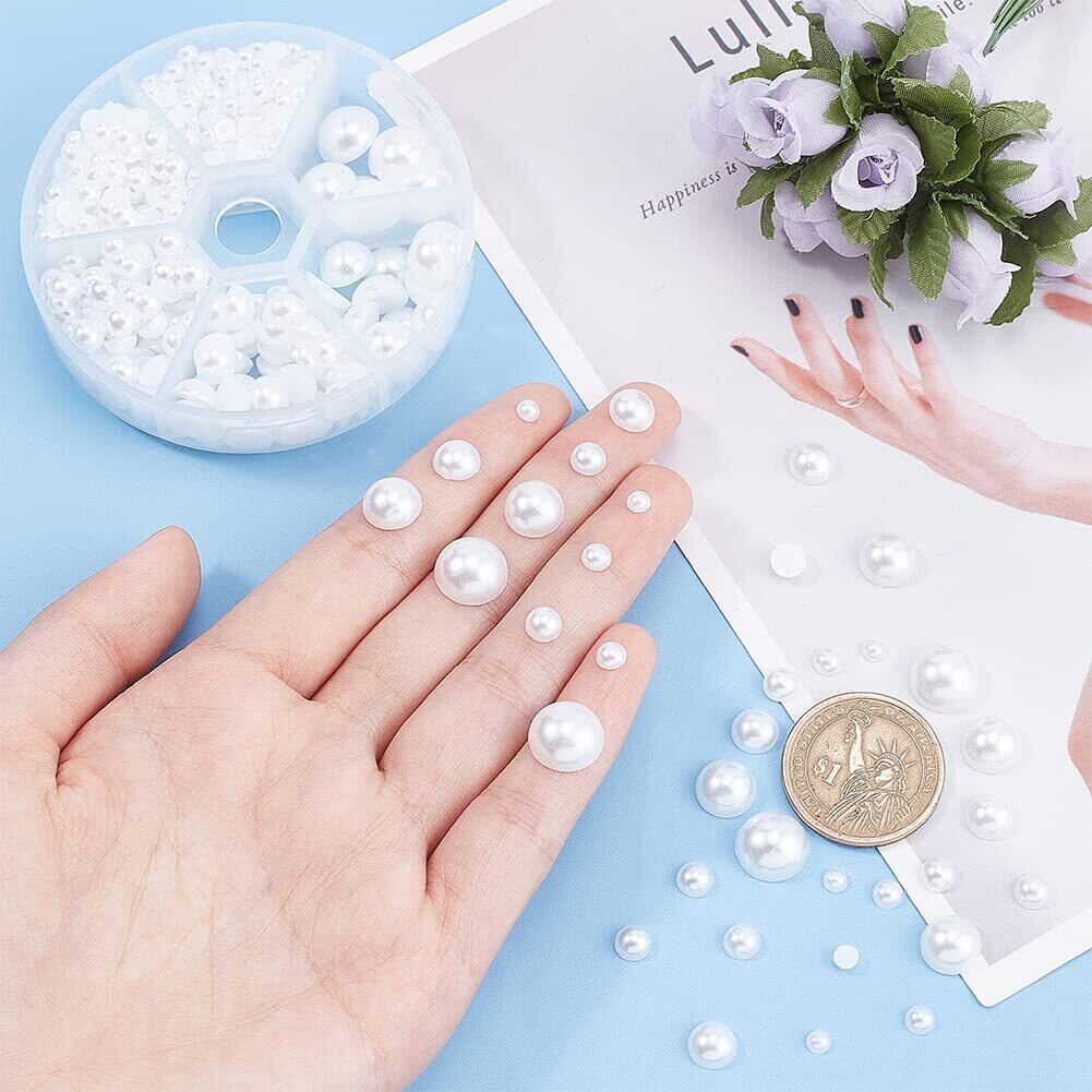 PandaHall Elite 約650個/箱 4~12mm直径 人工 真珠 半円 ハーフ ラウンド ジュエリー DIY用 ホワイト