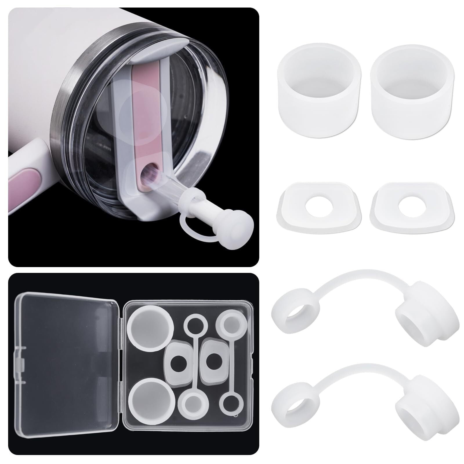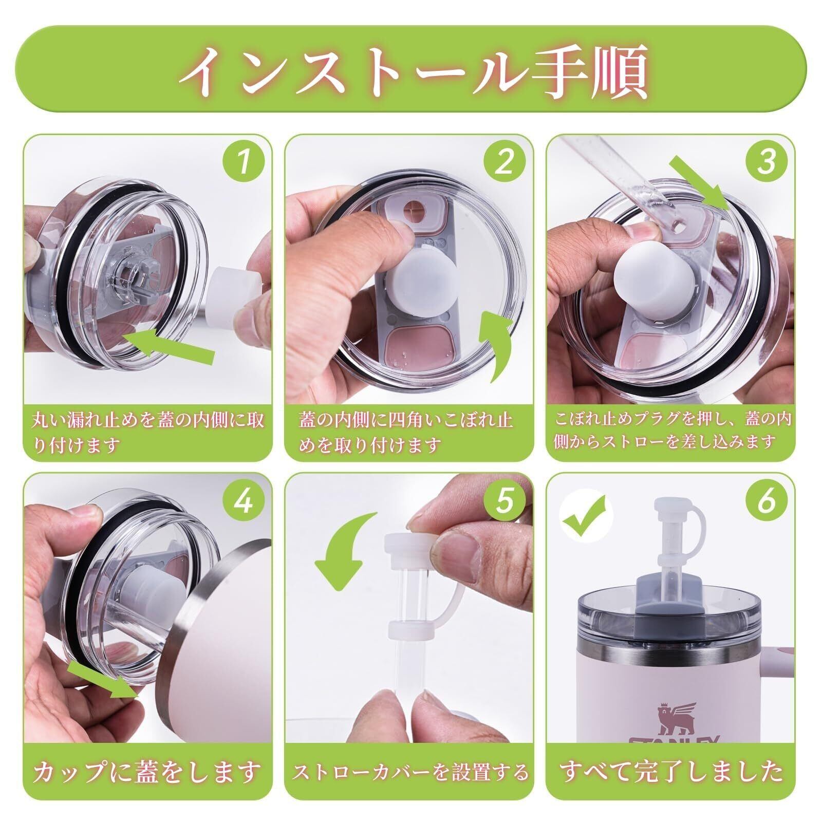 【Amazon 限定ブランド】ストローカバー こぼれストッパー6個セッ、Stanley Quencher H2.0 40オンスおよび30オンスのタンブラーに適合します。角型こぼれ止め、丸型こぼれ止め、ストロー蓋が付属します。 (2.0に適用)