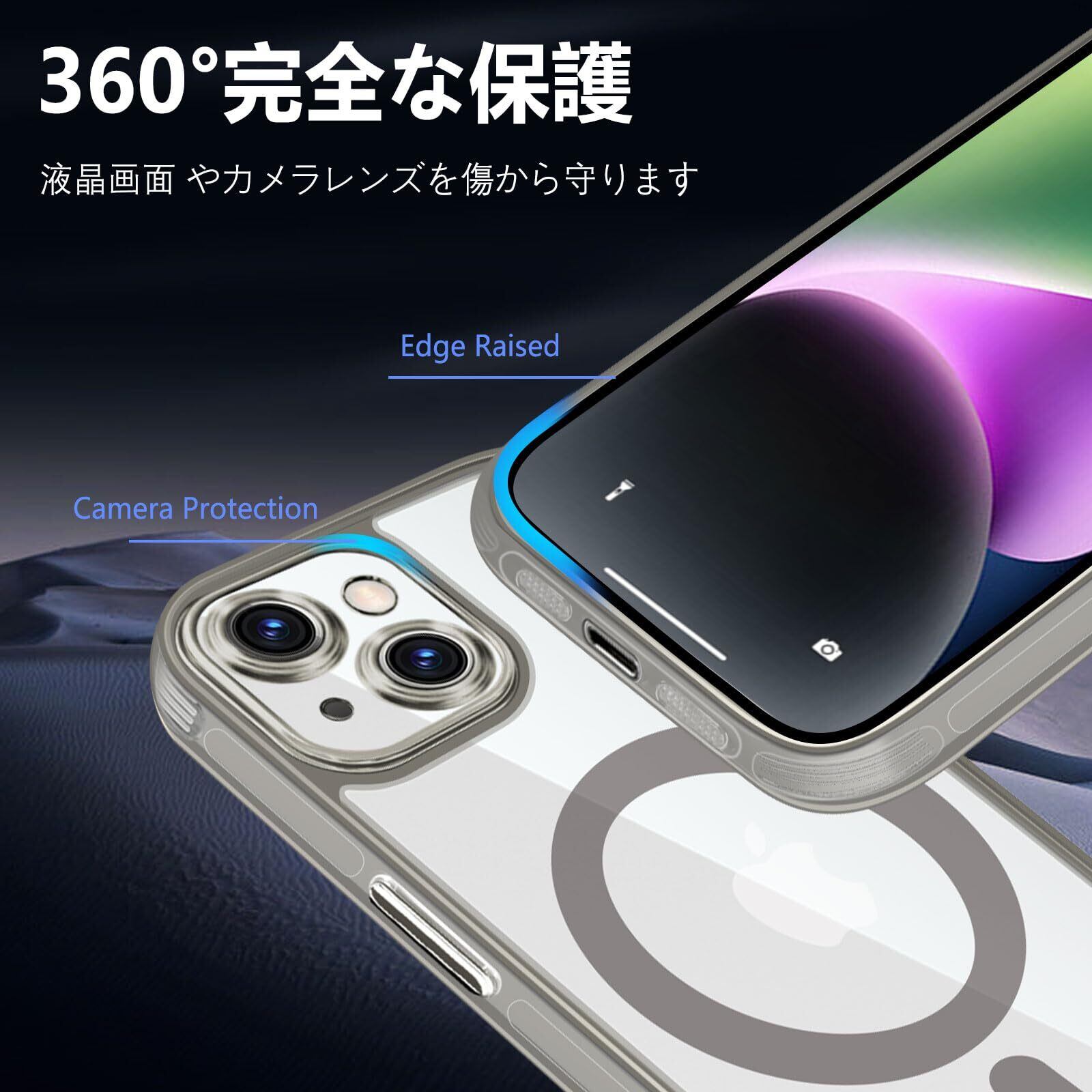 iPhone 14 ケース MagSafe対応 クリア 耐衝撃 透明 TPU PC背面 アイフォン14 薄型 ワイヤレス充電対応 米軍MIL規格取得 バンパー カバー レンズ保護 スマホケース 衝撃吸収 黄変防止 四隅滑り止め 耐久性 (グレー)