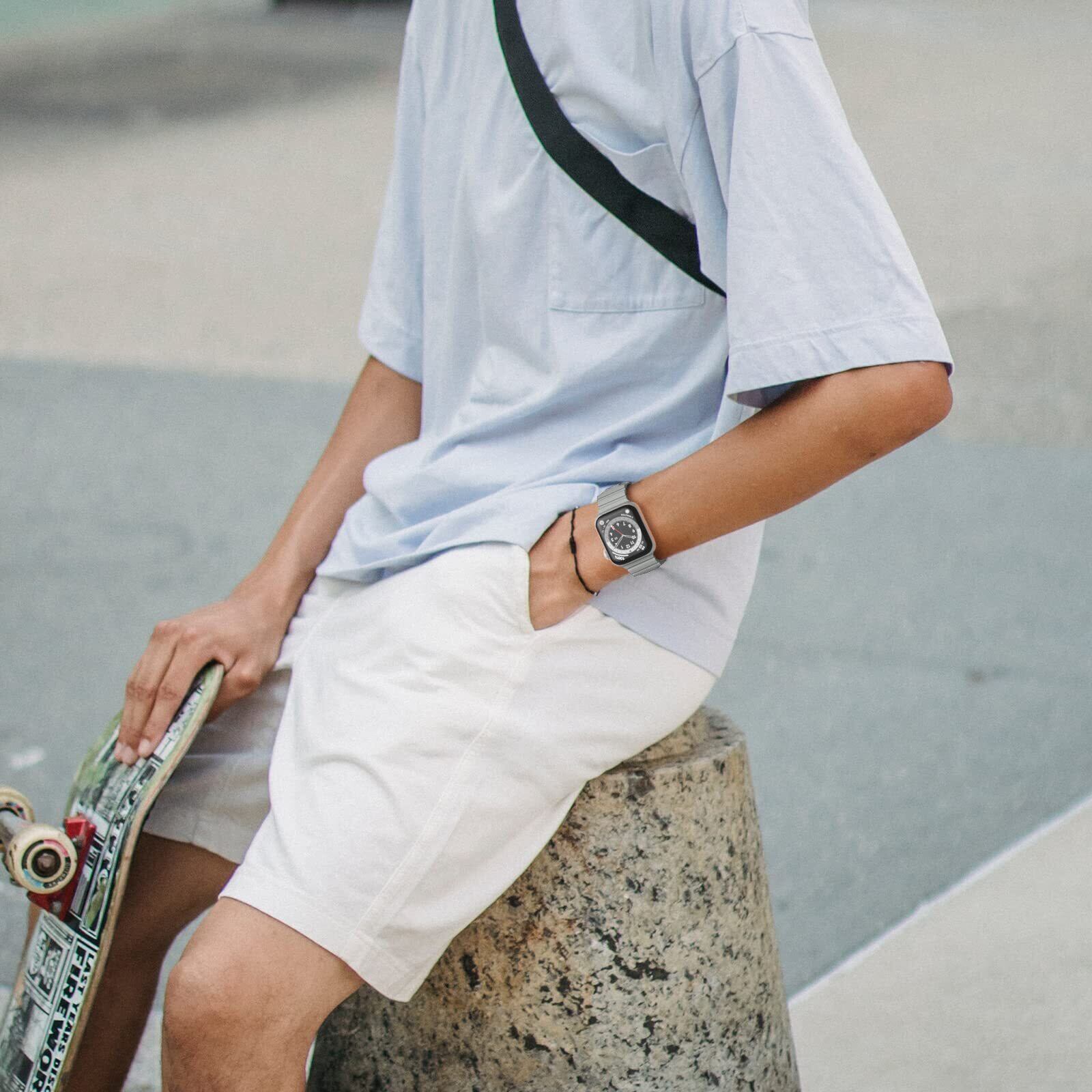 対応機種:Apple Watch Series Ultra/8/7/6/SE/5/4/3/2/1、全機種に対応可能。38mm/40mm/41mmサイズのバンドは14.47-20.32cmの手首に適する、42mm/44mm/45mm/49mmサイズのバンドは15.23-21.08cmの手首に適する、長さは調整可能。購入する前に、お手首の周りを測定してください