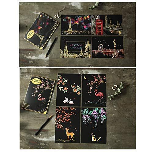 【セット内容】:板紙サイズ:20cm×14cm(はがきタイプ)、パッケージ内容:デザインスクラッチ板紙8枚、スクラッチ極細ペン1本