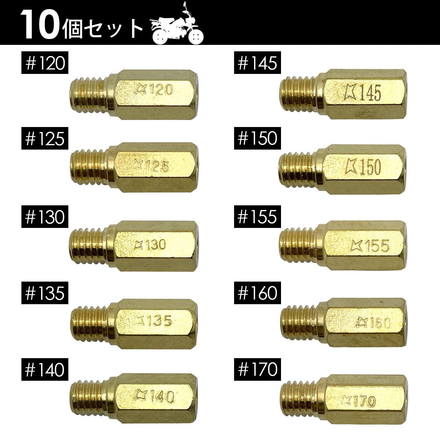 ファビュラス堂 社外 ケーヒン キャブレター メインジェット 120 125 130 135 140 145 150 155 160 170 10個 セット