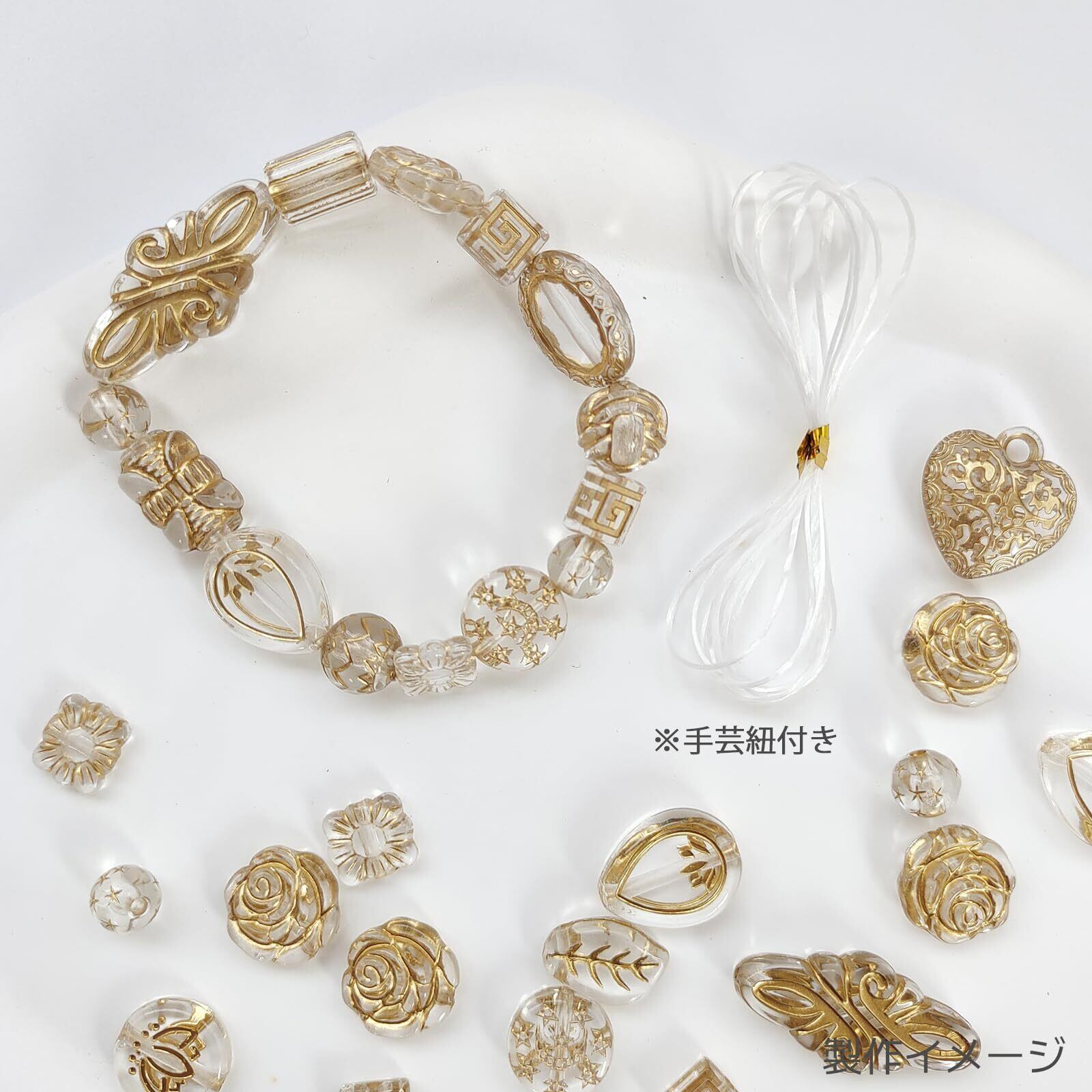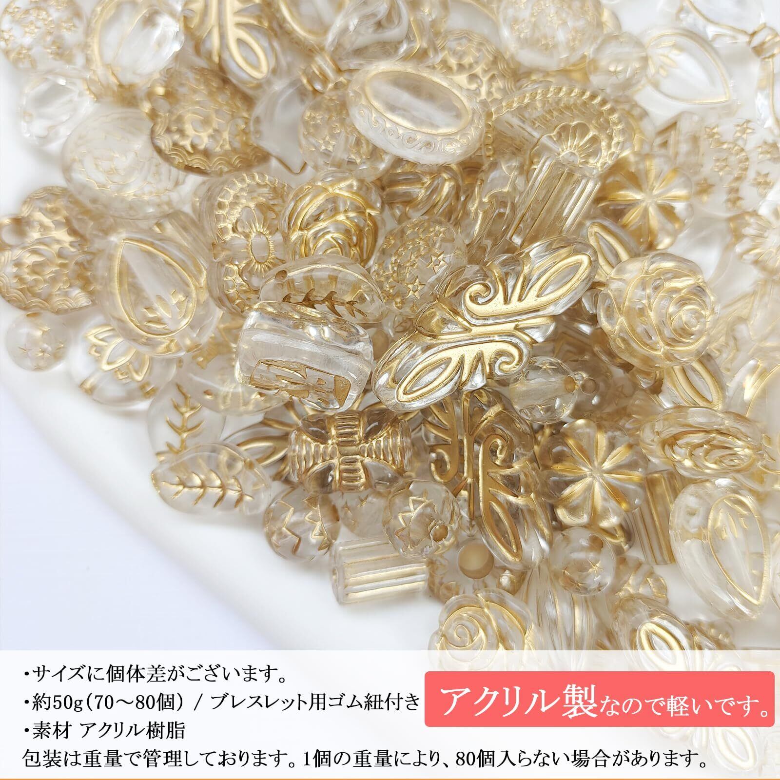 Harovo ビーズ アンティーク ミックス 50g入り デコビーズ パーツ 透かしビーズ アクリルビーズ アクセサリー レトロ 手芸 ブレスレット ハンドメイド 材料 初心者向け ゴム紐付き(クリア)