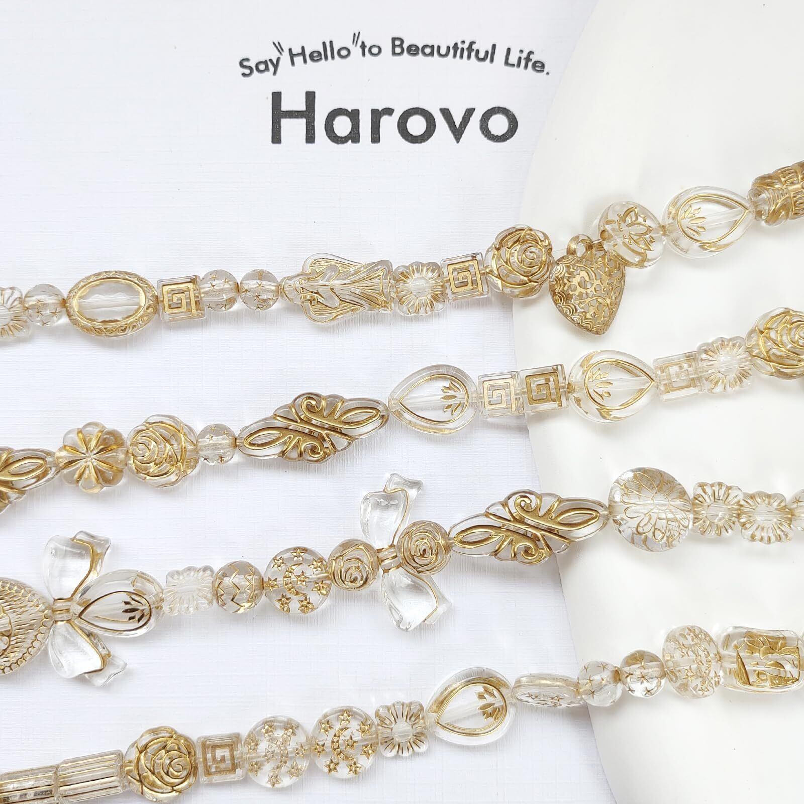 【新着商品】Harovo ビーズ アンティーク ミックス 50g入り デコビーズ パーツ 透かしビーズ アクリルビーズ アクセサリー レトロ 手芸 ブレスレット ハンドメイド 材料 初心者向け ゴム紐付き(クリア) | わくわくSHOP
