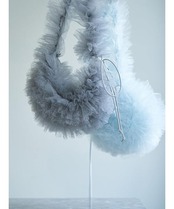 存在感たっぷりなたっぷりフリルのバッグが、さらにブラッシュアップして再登場! 今回はシルバーラメドット入りのシフォン生地を使っており、春夏のコーディネートの盛り上げ役にぴったりです。開口部の左右のホックを留めると、半月型からコロンとした丸型にチェンジ。さらにハンドルのドロストをキュッと絞ることで長さ自在に調節できる仕様なので、肩がけにしたり、ハンドルバッグにしたり、シーンに合わせて簡単に変えられます。ハンドルバッグにしたら、ドロストの細ゴムをキュッとリボン結びにしてポイント使いに。コーディネートのバランスに合わせてバッグの形を変えられるのはとても嬉しいポイントです。カラーバリエーションも豊富で、アイボリー、グレー、ブラック、ライトブルーの4色展開。開口部はジップで中身が見えない設計です。