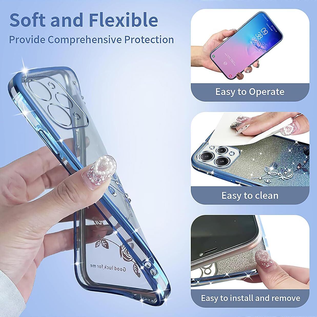 【透明で輝きがある】このRedmi 12 5Gのケースは、メッキフレーム、レーザーエングレーブされたパターン、ダイヤモンド付きのバックカバーを備え、ファッションとエレガンスを兼ね備えています。透明と輝く外観を自在に切り替えることができるキラキラステッカーも付属しています。