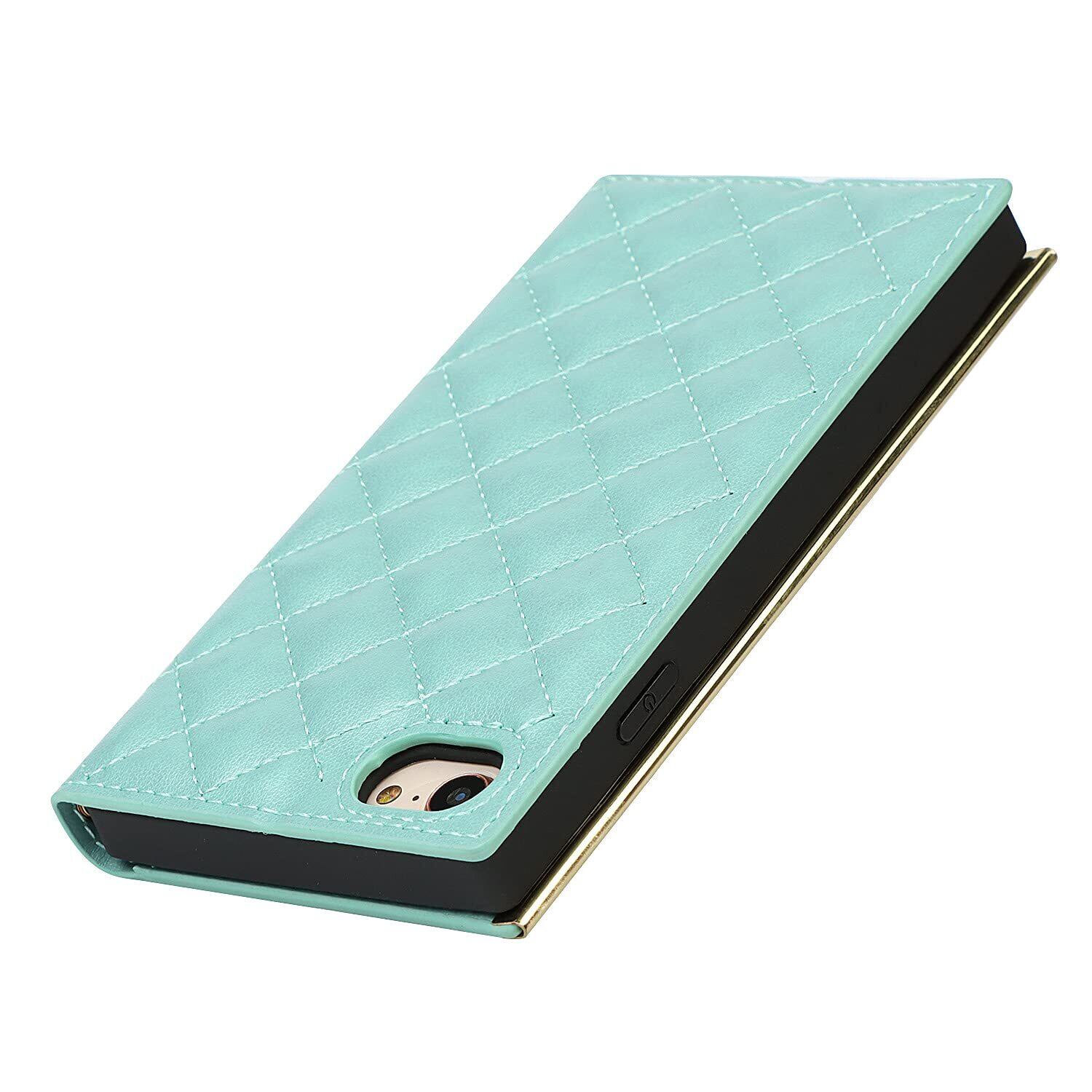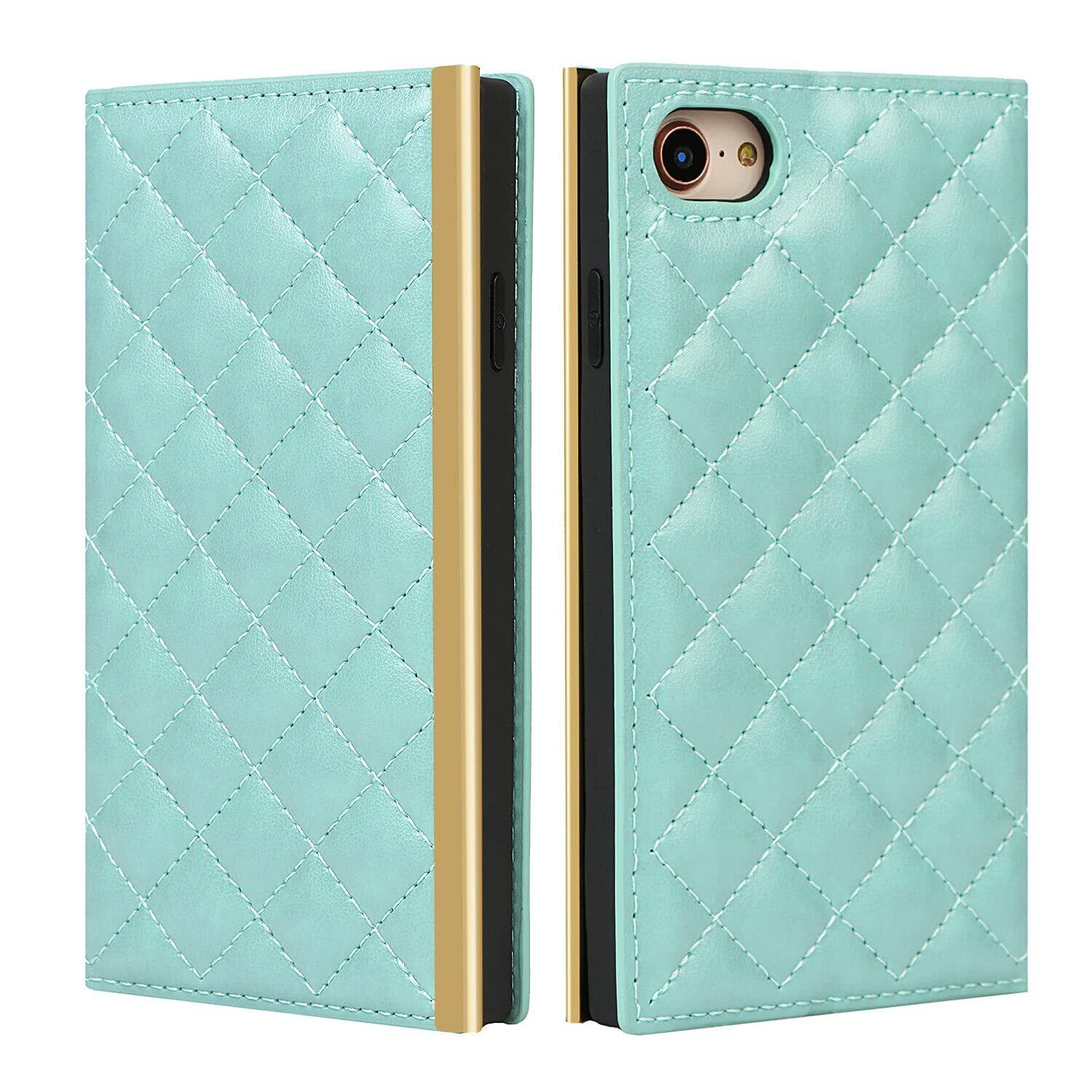 Pelanty iPhone7/ iPhone8 ケース手帳型 iPhone SE 2022 第3世代/ SE 2020 第2世代 携帯カバー PUレザー ストラップ付き 女性可愛い 化粧鏡付き suica ICカードホルダー 財布型カバー 手持ち縄掛け スタンド機能 耐衝撃性 落下保護 多機能 アイフォン7/8/SE2/SE3(短縄-ミントグリーン)