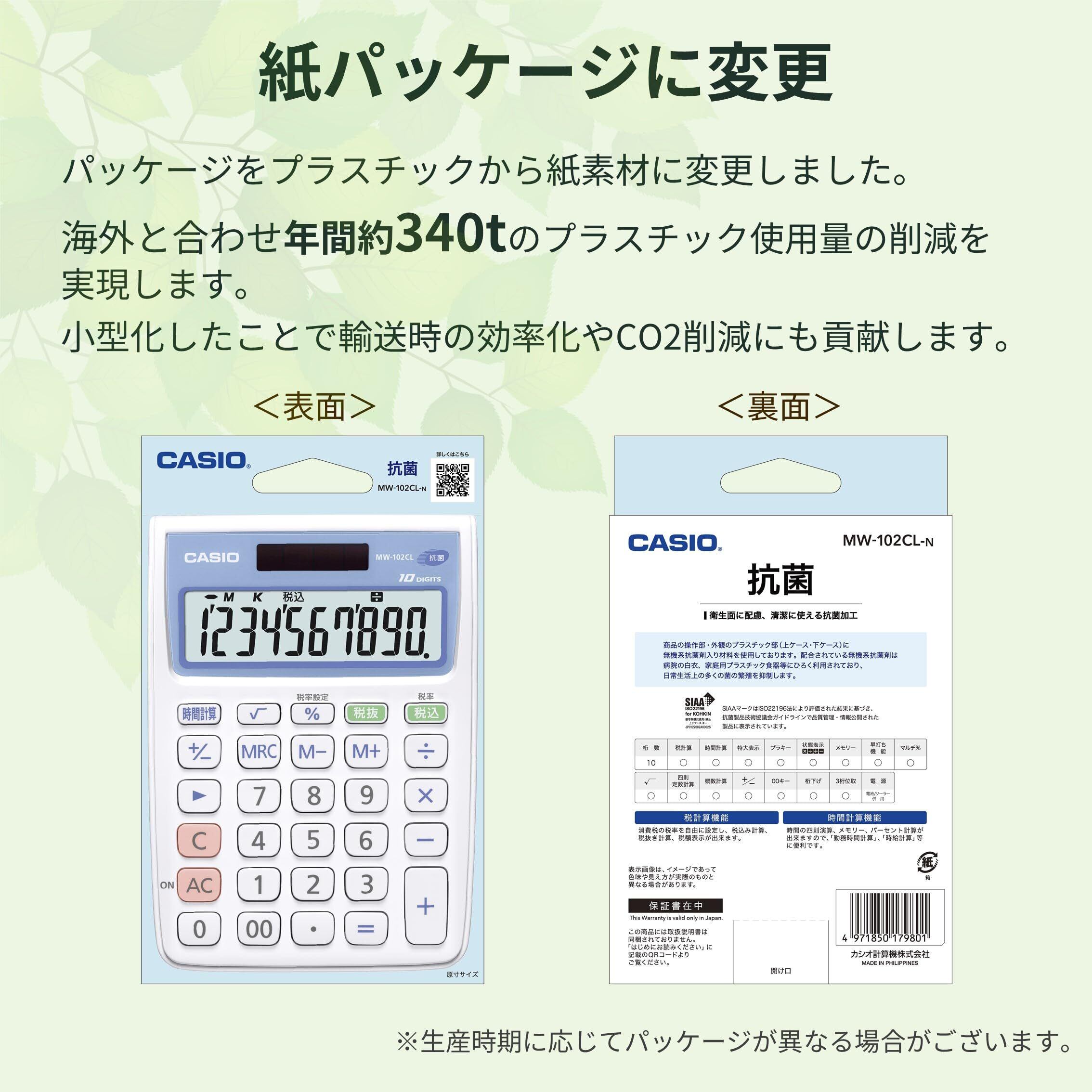 カシオ 抗菌電卓 ミニジャストタイプ 10桁 MW-102CL-N