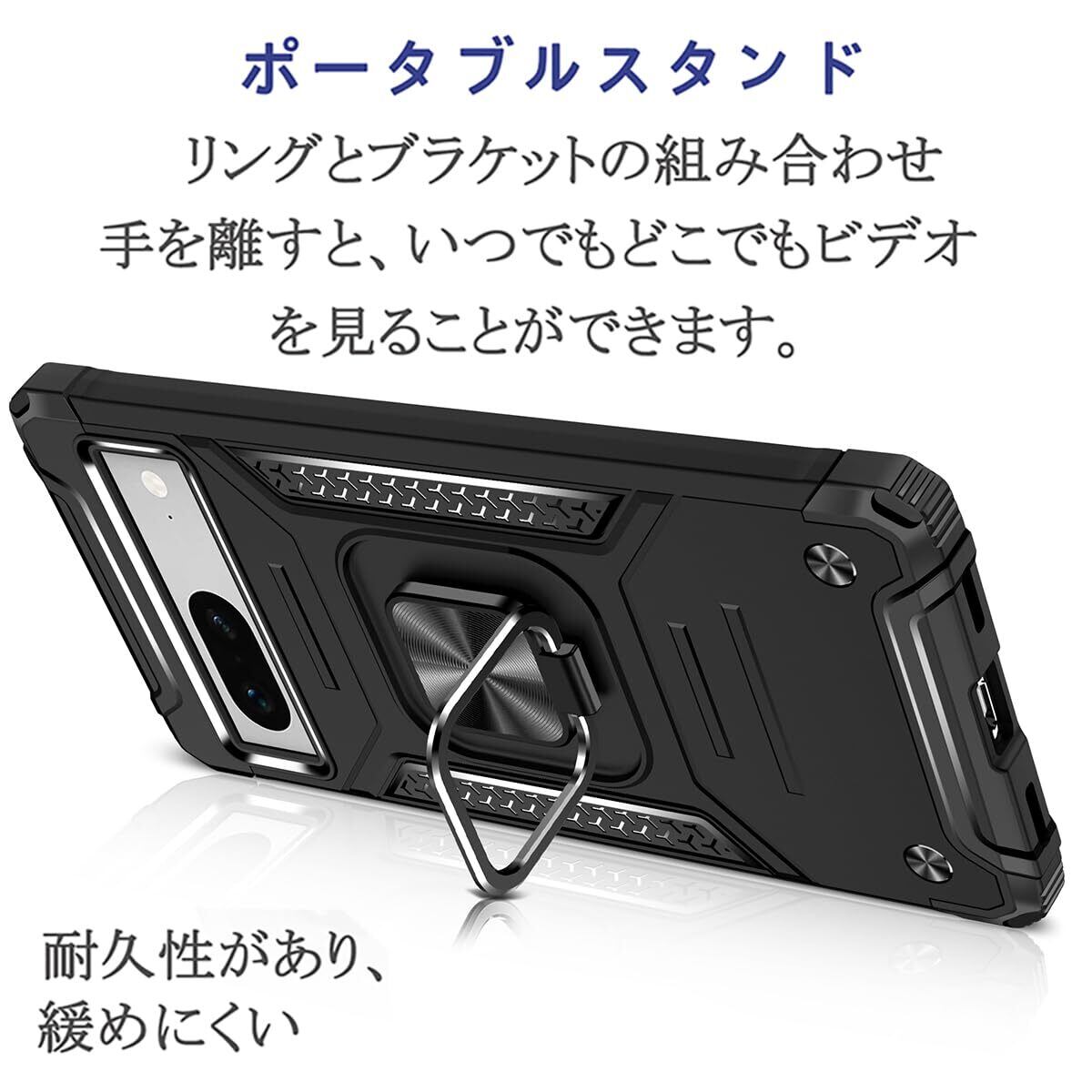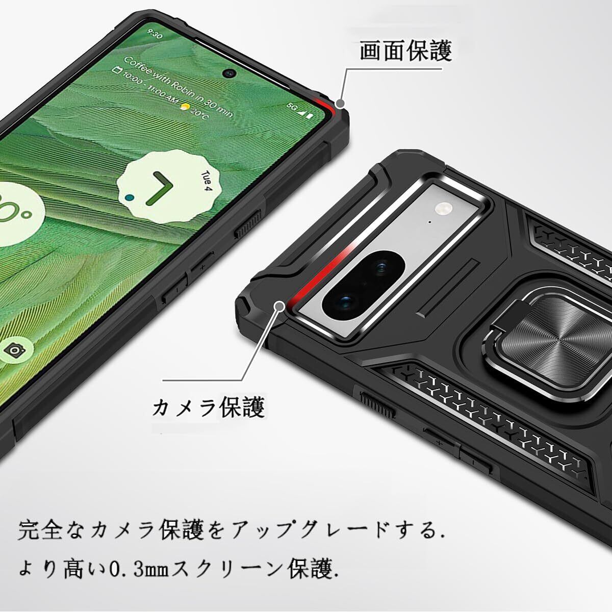 【新着商品】Pixel 7a ケース用,Google Pixel7a ケース Google Pixel7 a スマホケース + グーグルピクセル7a 强化ガラス フィルム,リング スタンド機能 付き 携帯ケース 人気 耐衝撃 横置き機能 Case Cover Google7aケース ピクセル7a ケース 背面 カバー 6.4インチ メンズ(黒) | わくわくSHOP