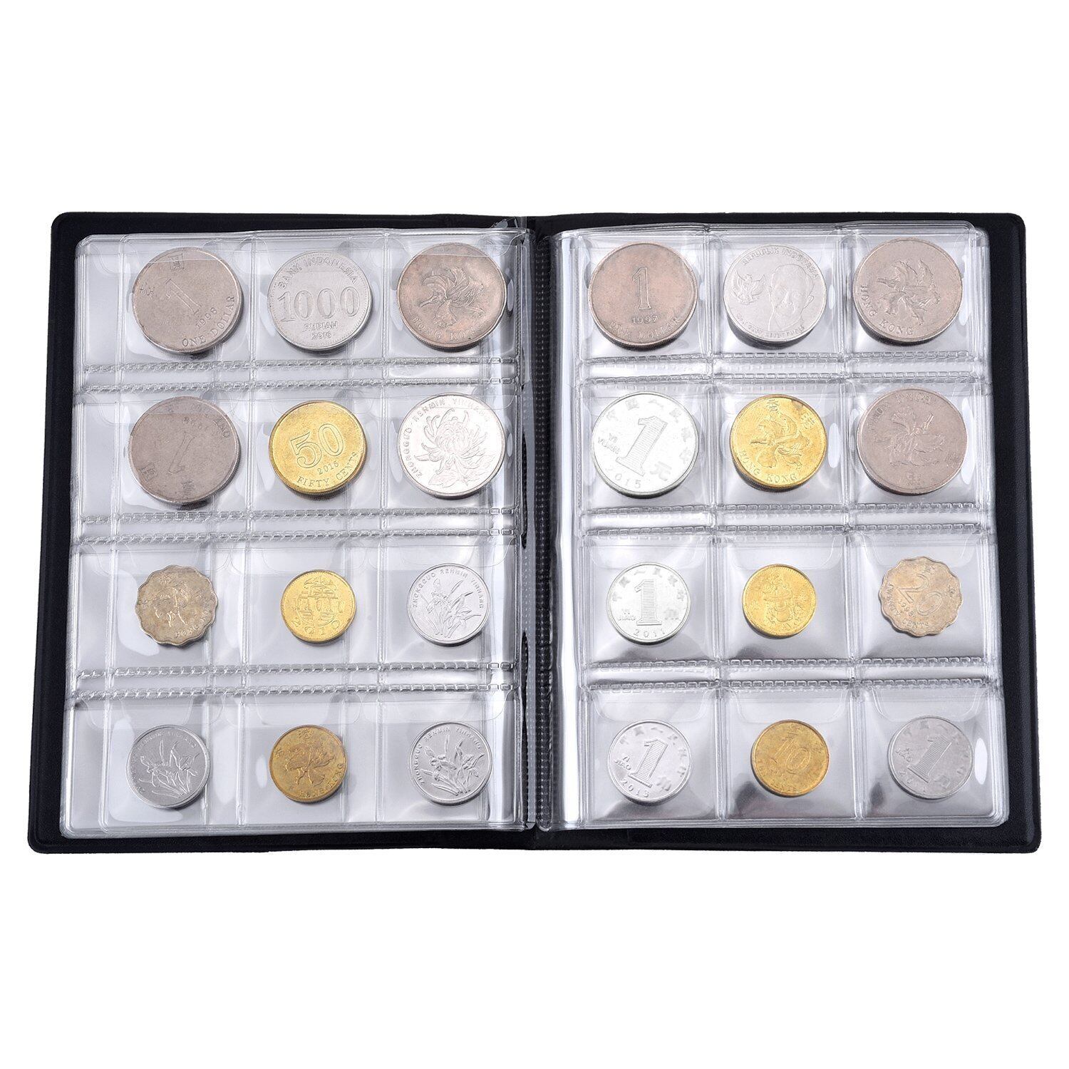 【特価セール】Mnixy 【ノーブランド品】 コイン 収集 保存用 コレクション アルバム 120ホルダー お金ポケット ミニ (ブラック)