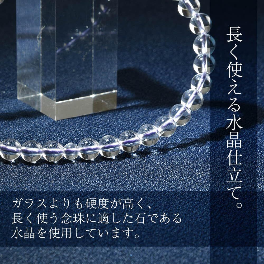 使用している玉は全て水晶。年齢問わずにご使用いただける美しい藤色の房は京都西陣で作られた正絹製。