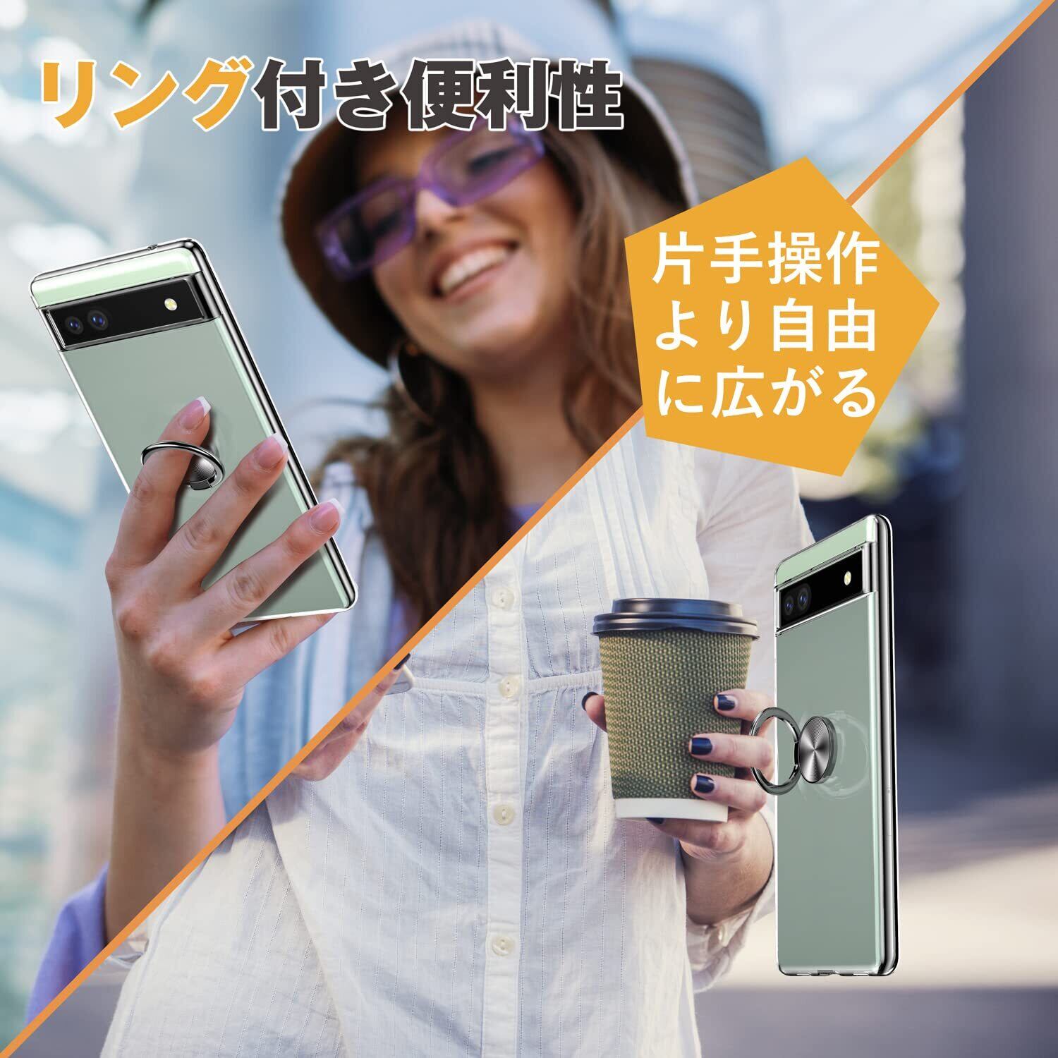 Google Pixel 6a ケース クリア リング付き ピクセル 6a 携帯ケース OURJOY スマホケース 極薄 透明 TPU 耐衝撃 スタンド機能 スト 車載ホルダー カバー • クリア