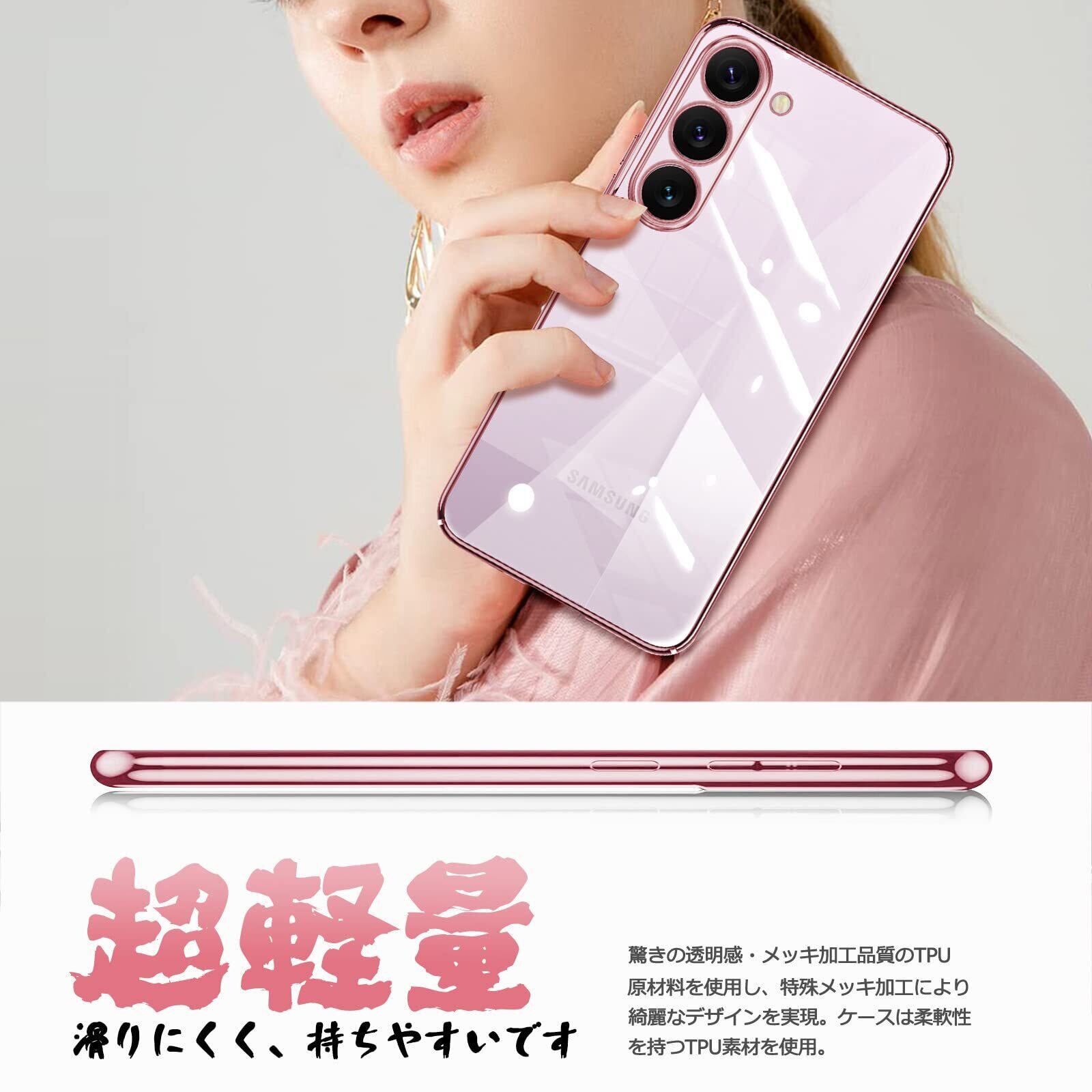 Samsung Galaxy S23 ケース クリア SC-51D SCG19 カバー 透明 TPU シリコン 耐衝撃 メッキ加工 薄型 軽量 ソフトカバー ストラップホール ギャラクシー S23 スマホケース (ローズゴールド)