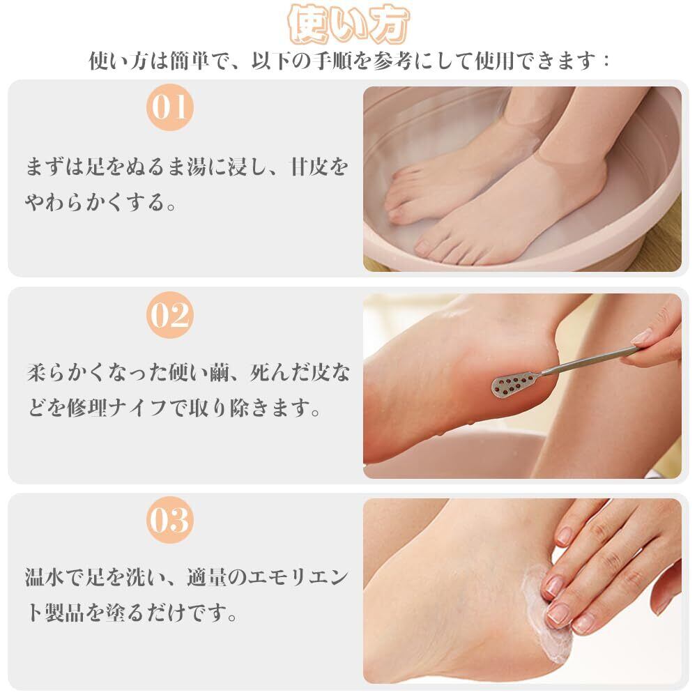 この製品は使いやすく、使用時には浴槽や足浴槽にケアが必要な部位を浸して、死皮細胞を柔らかくしてから、掻爬する必要がある。 使用後、水で洗い流して拭きます。暖かいヒント:厚い死んだ皮膚は2-3回繰り返す必要があり、クリーンではないの使用は正常な現象であり、適度な足の摩擦ではなく、より良いクリーナー、足を傷つけやすい過度の足の摩擦。