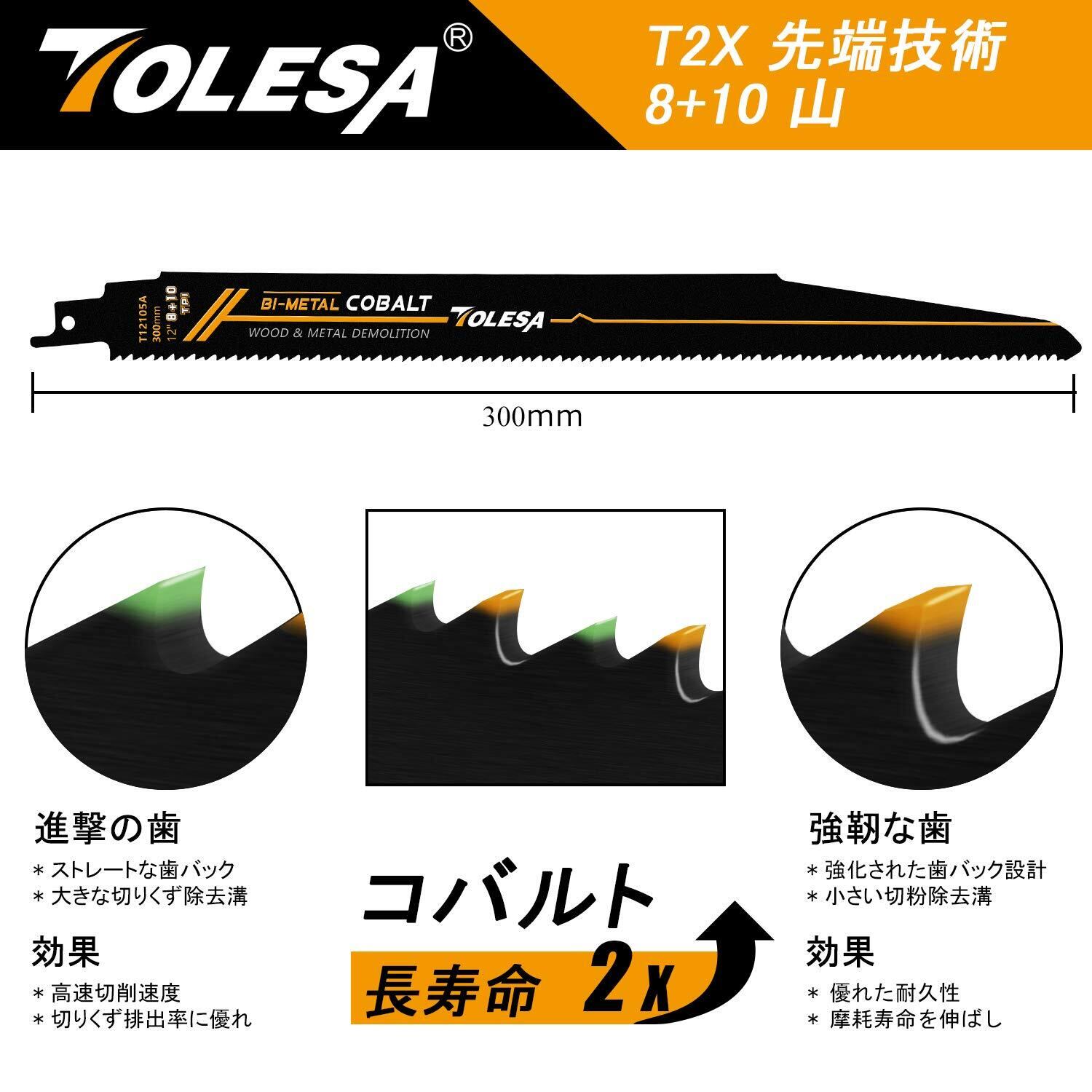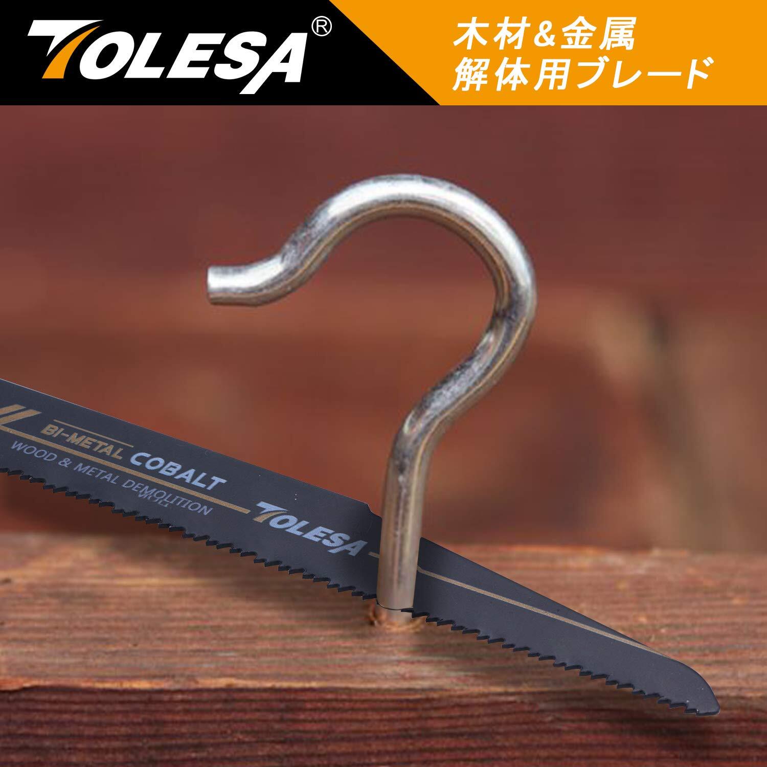 TOLESA レシプロソー替刃 8/10山 225mm バイメタル コバルト セーバーソーブレード 木工&金属 解体用 5枚入れ 釘付き木材 鉄 軟鋼板材 アルミ 黄銅 銅 塩ビ材